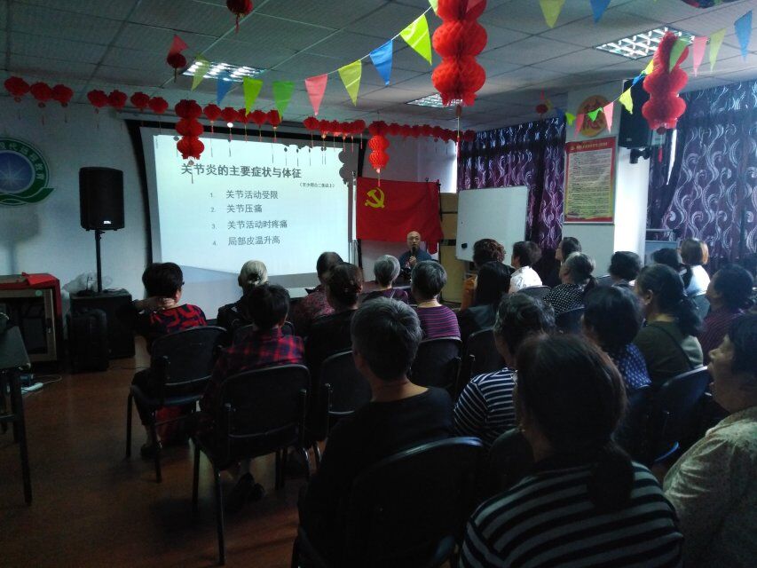 秋冬季是关节炎的高发期,为了唤起居民对关节炎疾患的广泛关注,不断提高社区居民的防病意识。10月24日下午,信谊社区特邀名院名医进社区开设医学讲堂,中国科学院大学宁波华美医院风湿免疫科陈勇医生受邀为辖区居民进行了一场通俗易懂的“怎样识别关节炎”健康知识讲座。陈医生深入浅出的言语,把关节炎的症状、种类、成因、预防等都进行了仔细讲解,关节疼痛不等同于关节炎,关节出现问题一般是50岁以上占50%,而女性又高于男性。关节炎要早预防、早诊断、早治疗,适当的运动与饮食的自控是关节炎、甚至是其他诸多疾病的预防准则。