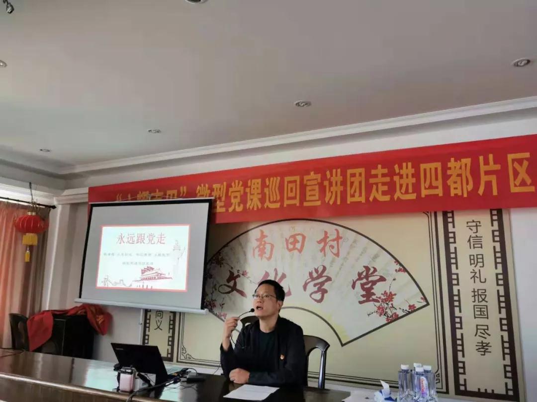 为夯实筑牢“不忘初心、牢记使命”主题教育的组织基础、思想基础,10月22日起,鹤浦镇“心耀南田”微型党课巡回宣讲团连续组织三场主题教育宣讲活动送进鹤浦镇各片区。