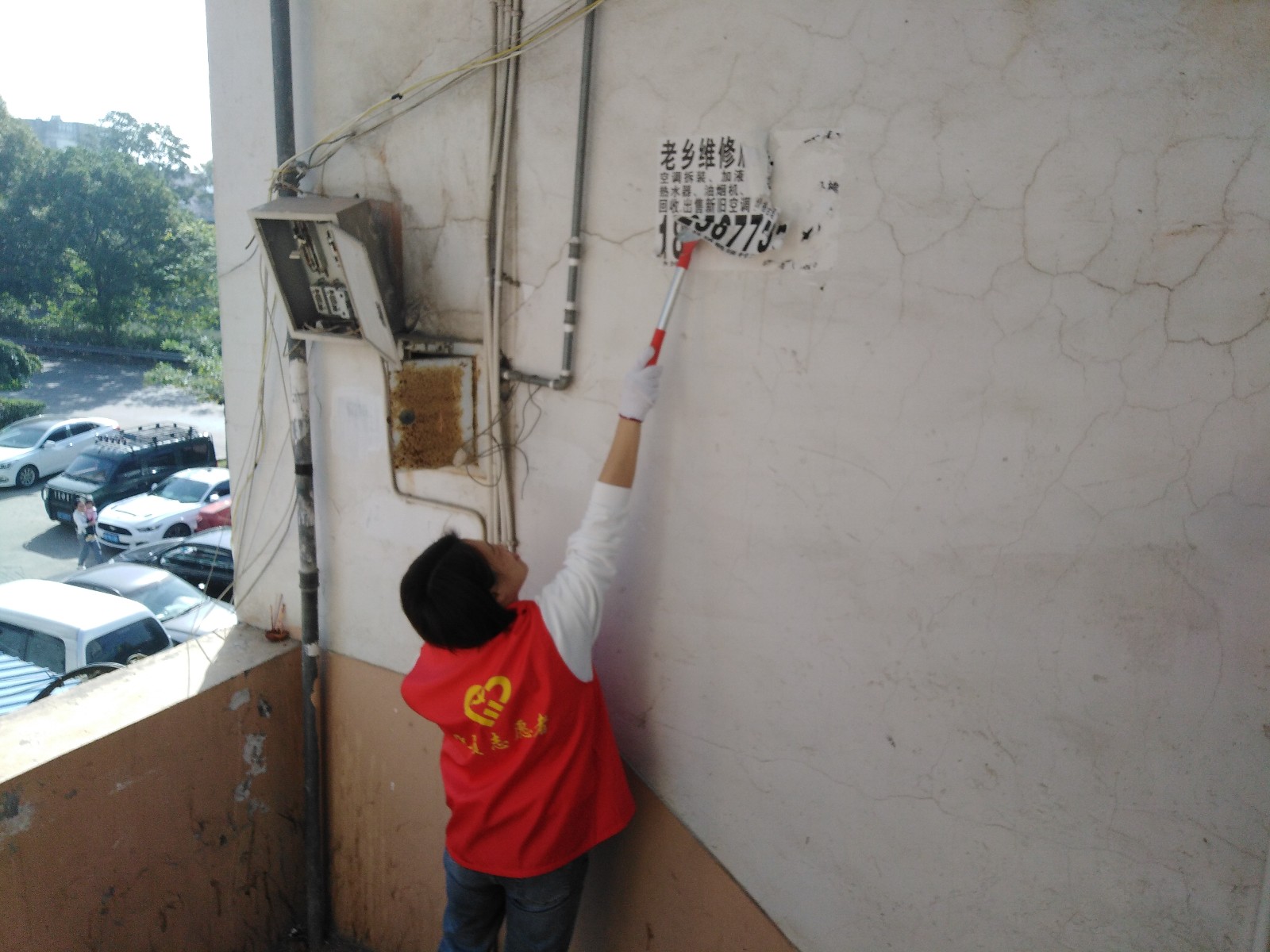 党员志愿者们分组包片、明确分工,首先对小区内的卫生死角、墙面卫生、生活垃圾情况进行了细致的排查。随后拿起铲子、刷子、垃圾袋等工具全面覆盖清除小区死角垃圾、楼道内乱贴乱画及杂乱小广告等。活动中,党员志愿者们不怕脏、不怕累,充分发挥了党员的先锋模范作用。