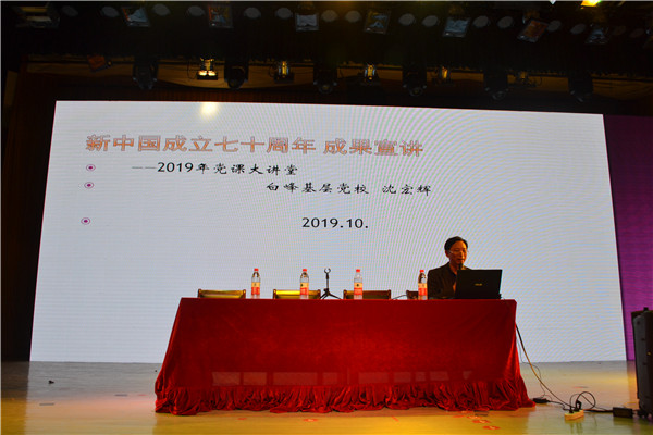 接着,社区教育中心沈宏辉校长作了题为《新中国成立七十周年成果》主题教育讲座,沈校长从建国前后的不同历史时期,深入浅出地阐述了我国在政治、经济、文化、教育、科技、军事等各方面的巨大变化,人民生活水平的极大提高,充分体现了在中国共产党领导下我国的社会主义建设所取得的伟大成就。
