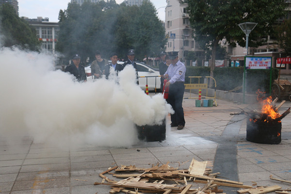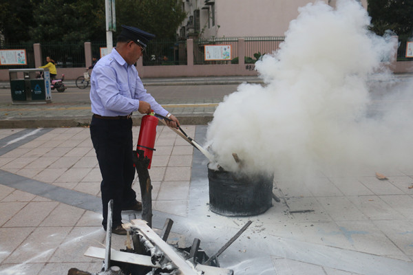 在演练之前,社区消防安全负责人对此次消防演习作详细讲解,介绍了灭火器的使用方法、火灾事故发生后的基本扑救方法以及自防自救措施和逃生自救方法等消防安全基本知识。随后,各小区物业工作人员、社区工作人员在工作人员的指导下分批对消防器进行现场灭火操作。此外,针对不同的火情,实地观看并演练消防水管的铺设及使用。演练结束后,工作人员针对演练中存在的问题进行了针对性的指导。
