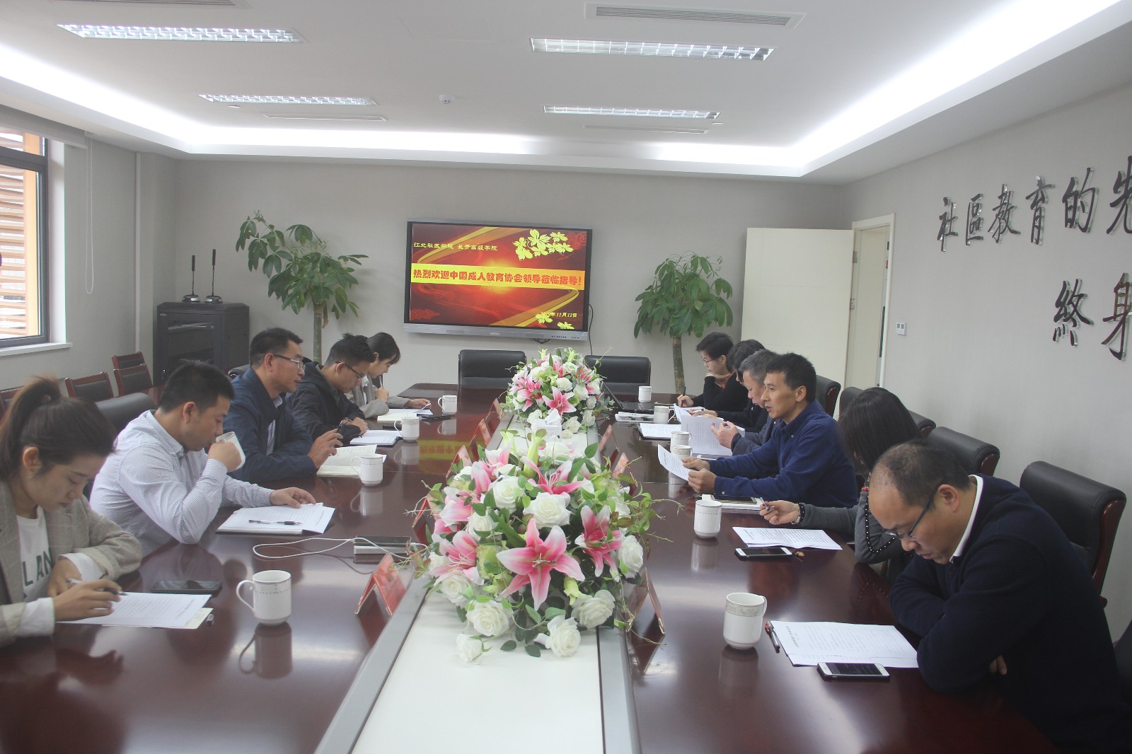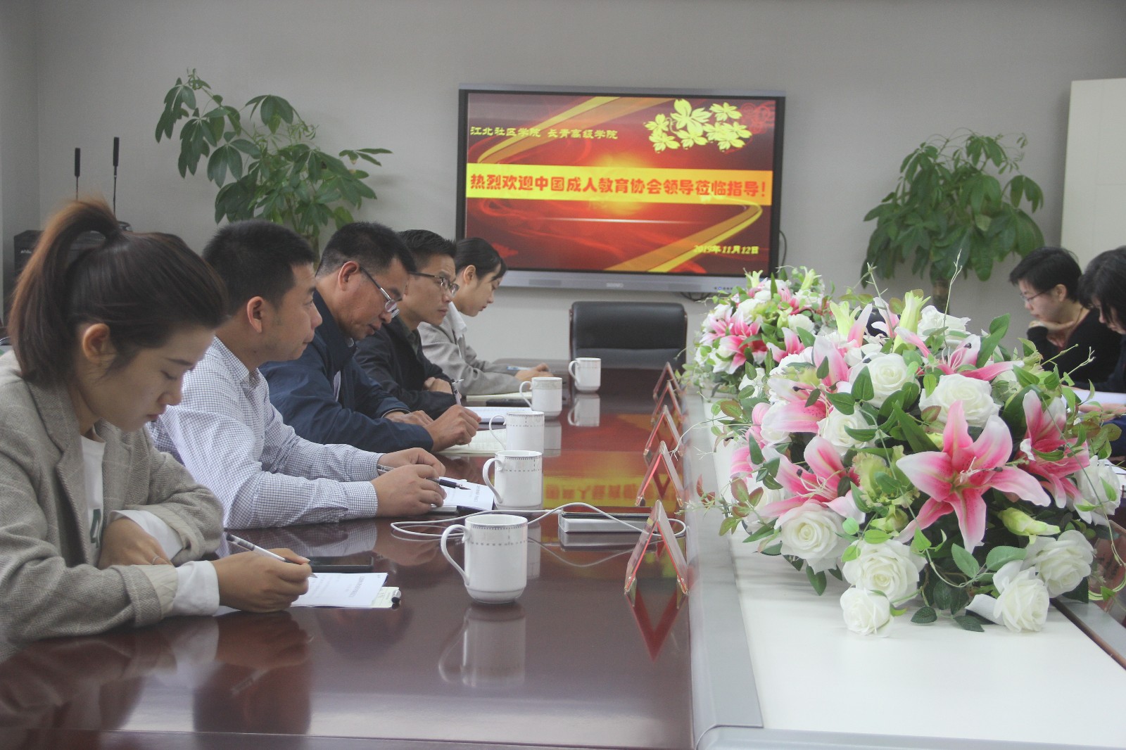 11月12日,中国成人教育协会网络中心副主任李荣华、中成协家庭教育项目负责人项海木和中成协老年教育项目负责人袁刚一行走进江北社区学院调研江北社区教育,江北区副局长张曙光、社教科科长孙忠刚、副科长方平、社区学院院长徐奋等一起参加了调研。
