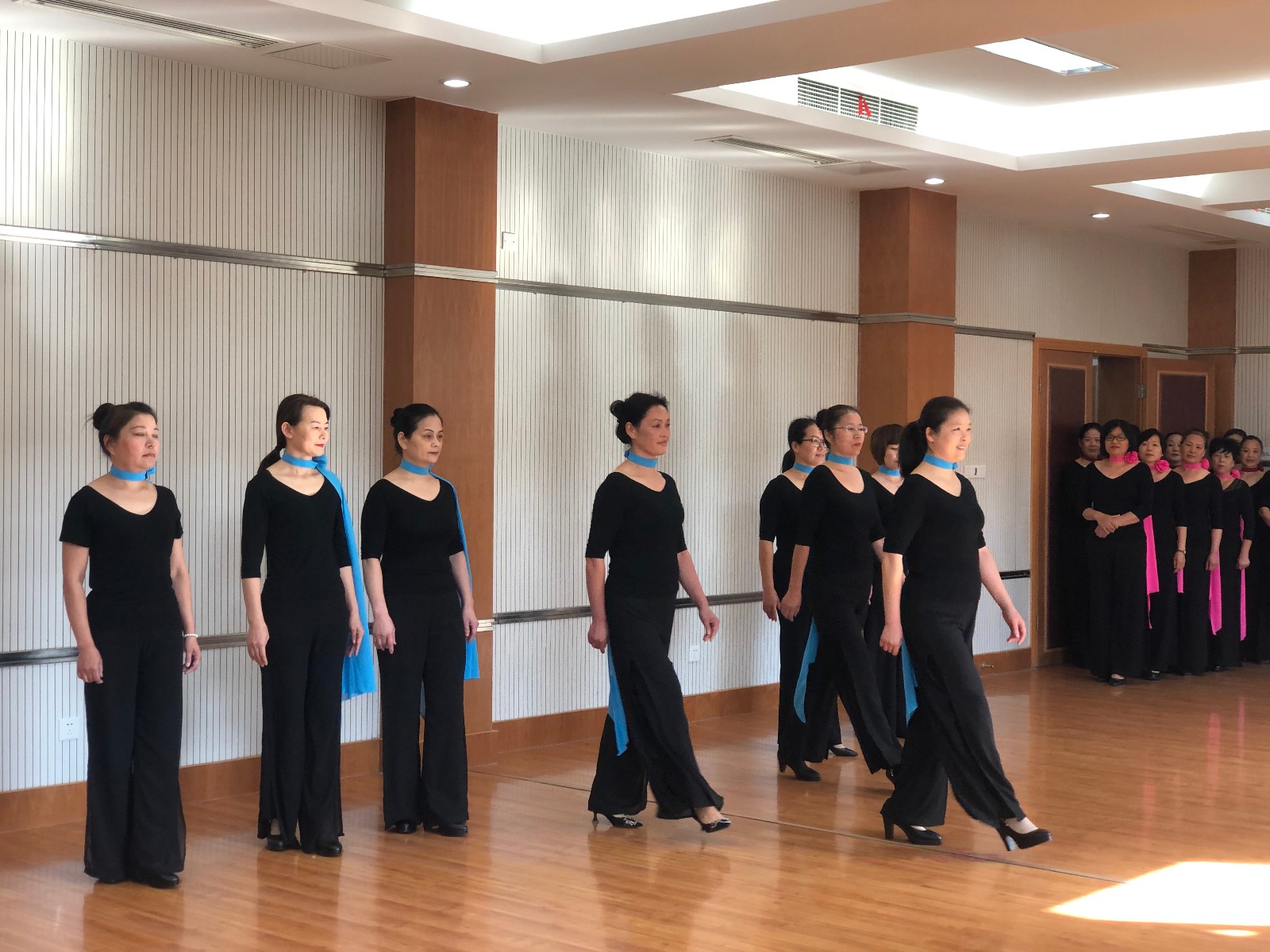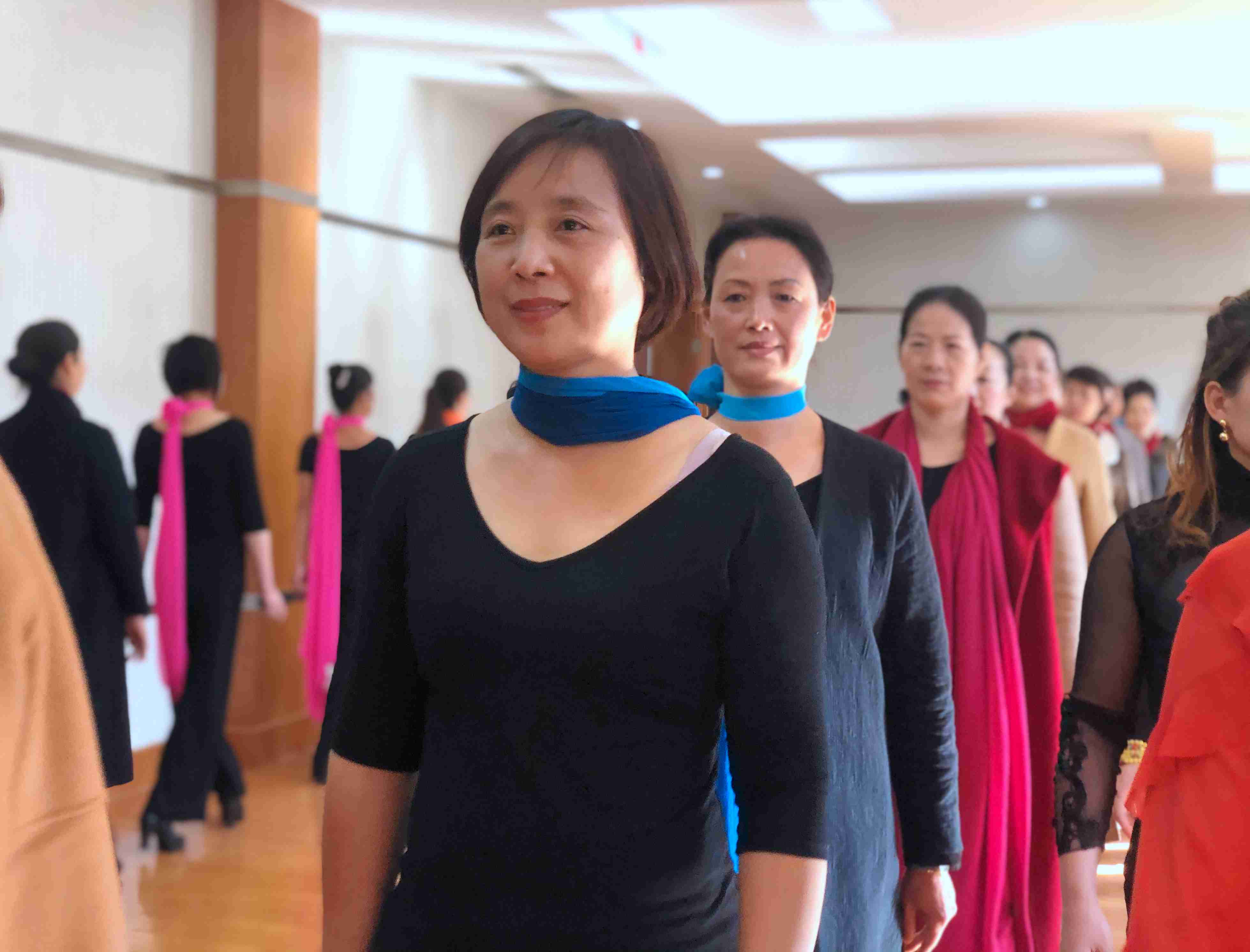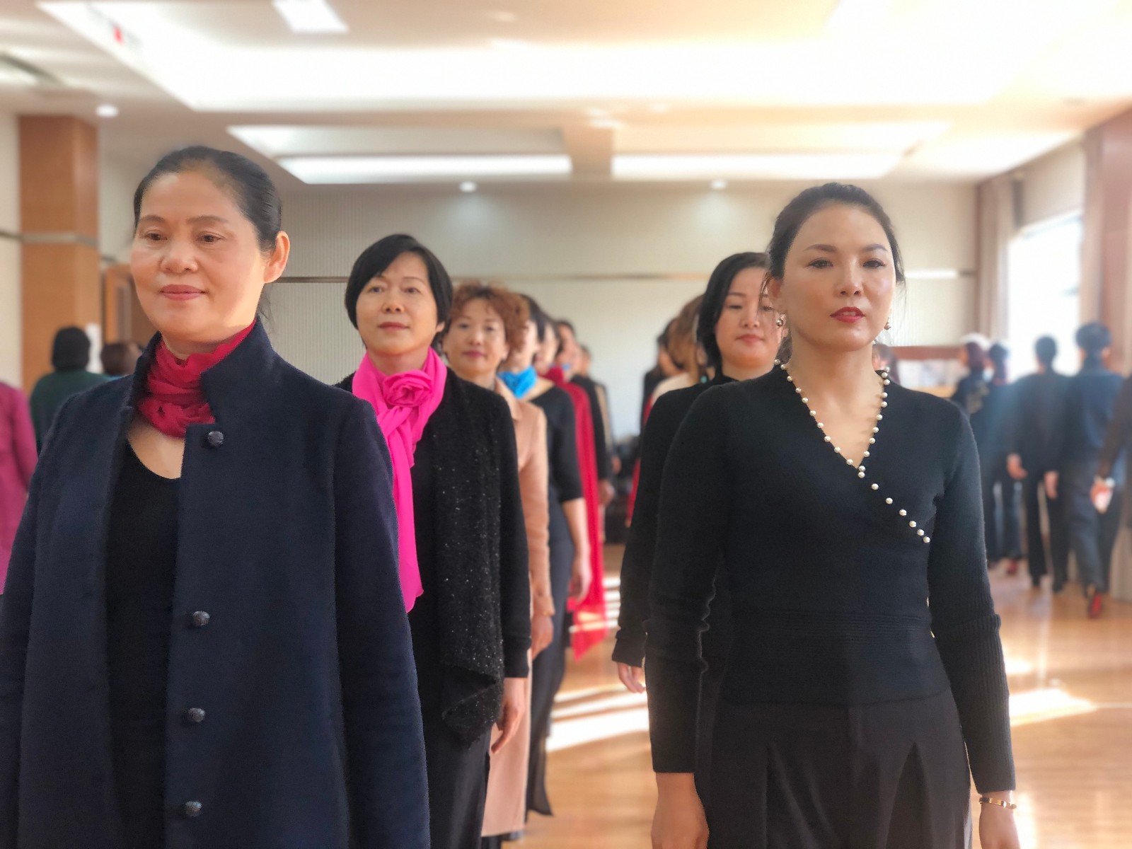 泗门成校学员和老师以饱满的热情和优雅的姿态,迎接坎墩成校的到来。锦袍华贵淑女娇,玲珑曲折现妖娆。两地的旗袍美女们,在泗门成校三楼排练教室,随着旋律唯美的音乐伴奏,迈着优雅的步调,她们或站在阳光下衣袂飘飘,或变换队形舞姿轻盈,一扬手、一回眸、一瞥一笑,举手投足间无不洋溢着女性的独特魅力。她们的一颦一笑,顾盼生姿,令人难忘,一场充满东方韵味的艺术盛宴让人大饱眼福。