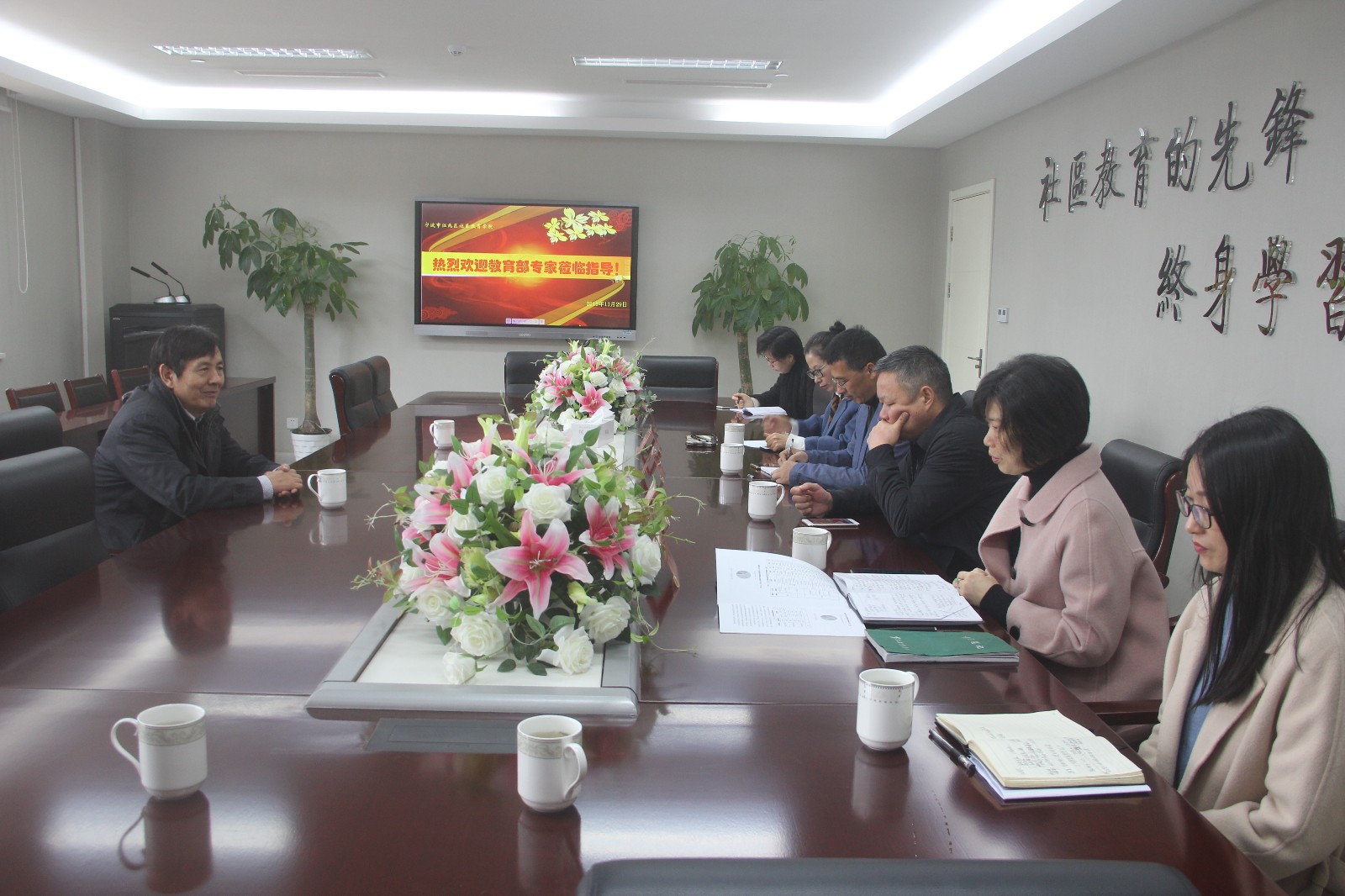 11月29日,教育部教育发展研究中心终身教育研究室主任窦现金在宁波市教育局终身教育与民办教育处陈鸿洋处长的陪同下到江北社区学院调研社区老年教育。江北区副局长张曙光、社教科科长孙忠刚、副科长方平、社区学院院长徐奋等陪同调研。