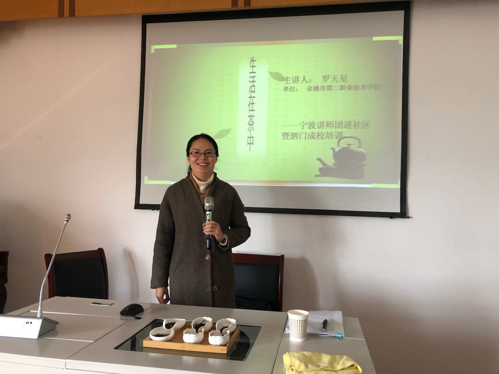 12月4日,泗门成校开设了一场《生活在茶中》的培训课程。本次活动邀请了宁波讲师团罗天星老师和泗门成校茶文化爱好者参与,大家聚集泗门成校,在罗老师的引领下,领略尘封于历史中的茶文化,了解喝茶的有益功效。