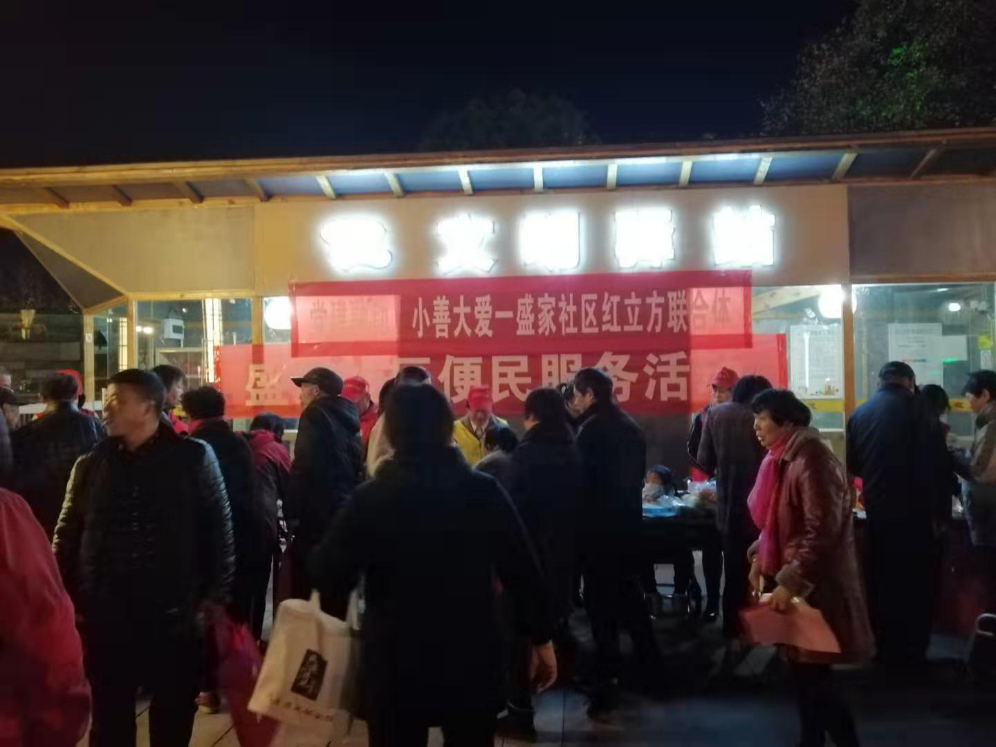 12月12日晚上,盛家社区在市民广场文明驿站开展了“党建融动,小善大爱”红立方联合体便民服务活动。现场有免费姜茶、切参、爱心义卖、手机贴膜、洗眼镜、手机银行体验区、平安法治宣传、垃圾分类宣传等项目,让更多居民享受到便民利民的服务。