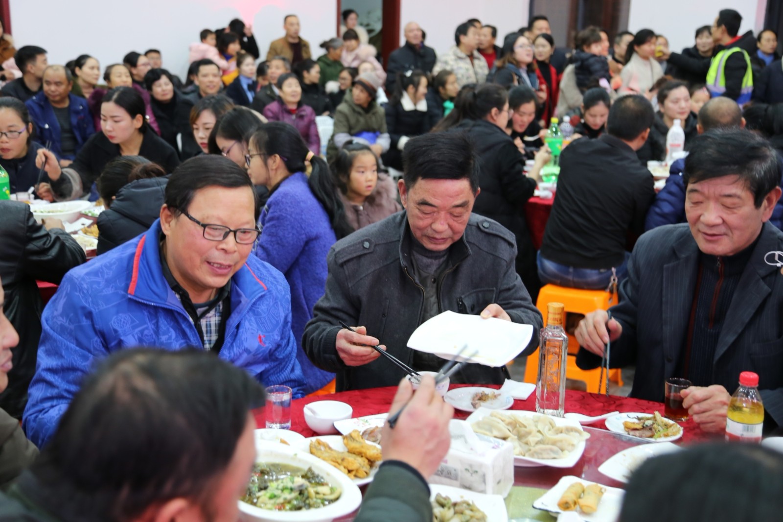 今晚是新渡头人文化月的闭幕式。下午1点,流动支部书记张德水早早赶到活动现场。他热情地解释,现场一桌桌的家常菜,都是来自五湖四海的流动支部党员带来的。“你看,有安徽的椒盐猪蹄、四川的酸菜鱼、江西的尖椒牛柳,花色品种很多。”张书记说,大家在异乡奋斗了一年,有苦有甜,有得有失,通过百家宴,希望大家不忘家乡味道,不忘来时的初心,在新的一年里迎难而上。紧接着,“五四乡帮”的志愿者也陆续赶到了。他们他们是今天的“演员”,也是活动的主角。小浃江夜巡有他们的身影、社区治安巡逻留下过他们的汗水、大转盘井然有序的交通有他们辛劳的付出。晚会上,社区特别评选出了十佳志愿者、五四乡帮优秀志愿者20名,进行上台表彰。优秀志愿者李清强说到:“新渡头人文化节,让我们外乡人充分融入本地,让我们很真实地感受到,我们就是渡头人,这里就是我们的家,也让我感受到我们的付出是受到大家关注并得到认可的。”