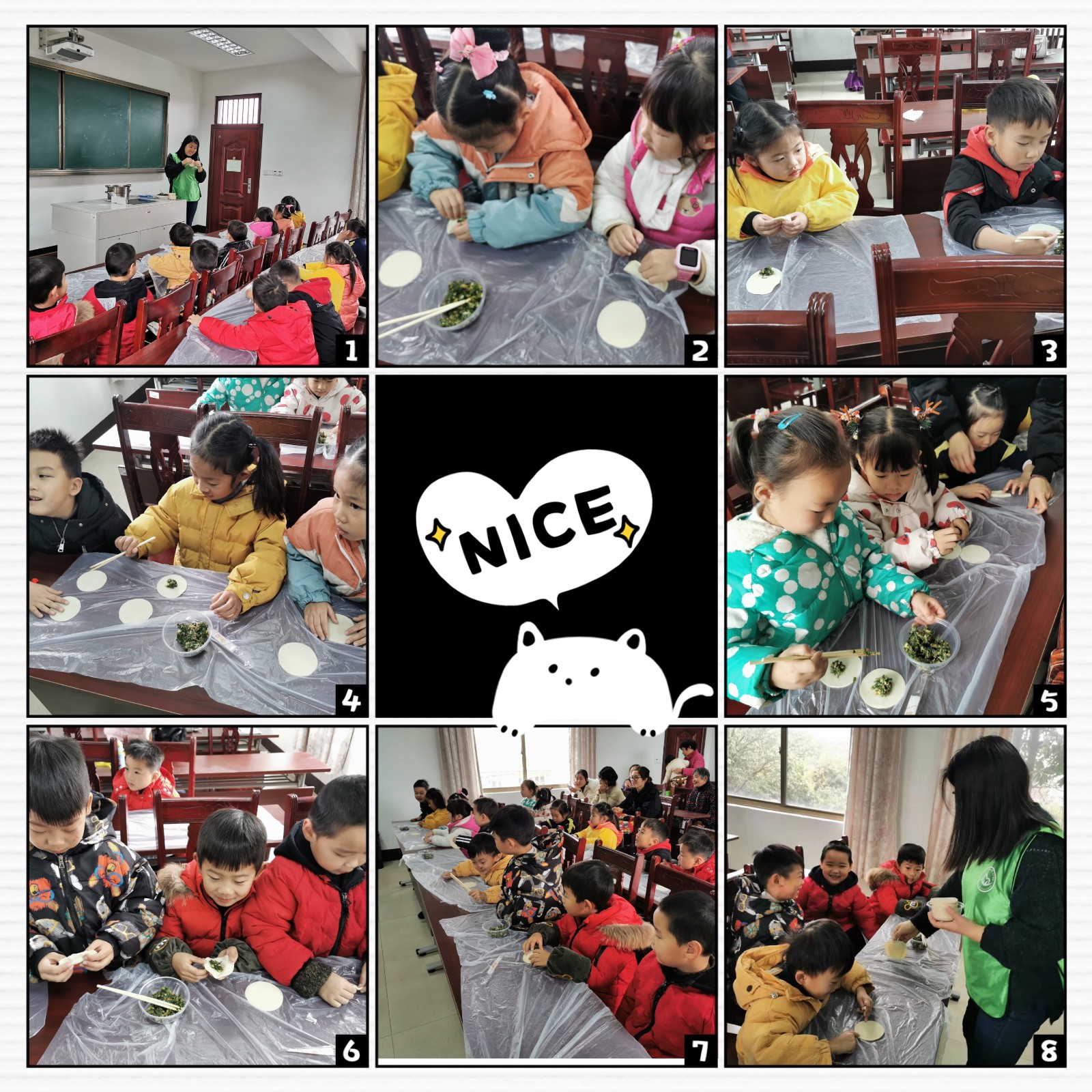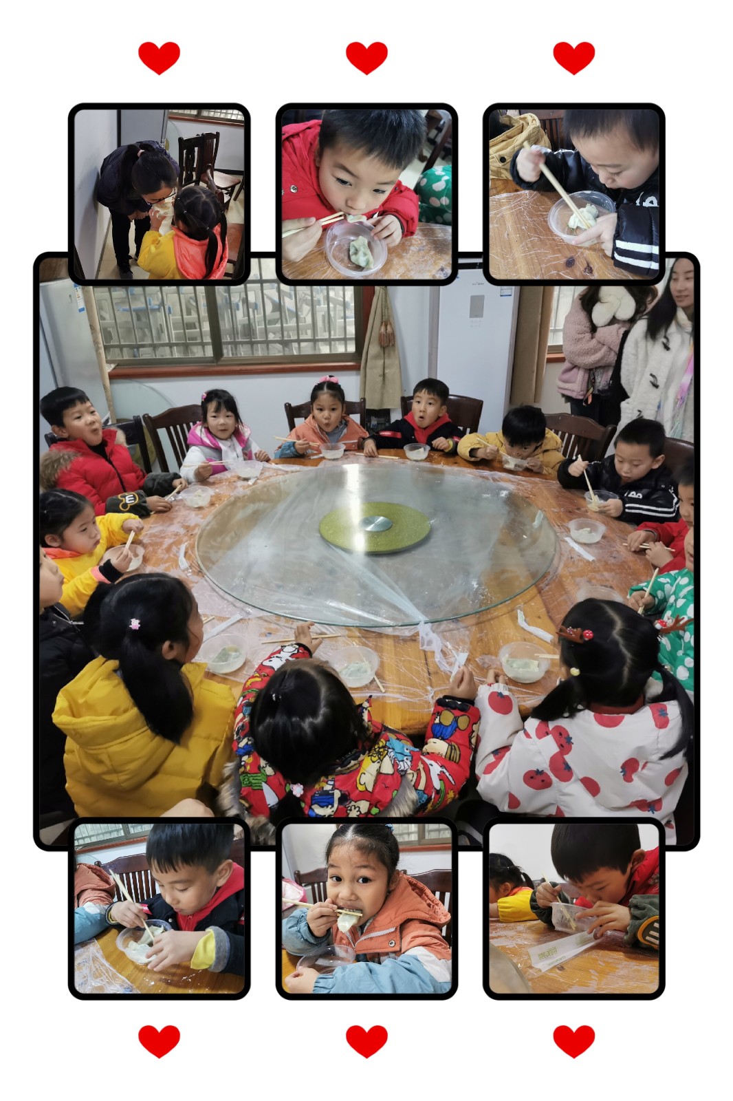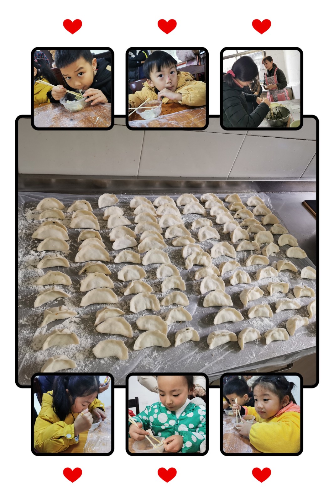 活动中,志愿者妈妈带领着孩子们听绘本故事——《冬至节》,从绘本中了解了很多有关冬至节的知识,知道了冬至节的来历、习俗等。听完绘本,孩子们还在志愿者的引导和妈妈的帮助下,体验了冬至习俗——包水饺。俗话说:“冬至不端饺子碗,冻掉耳朵没人管。”孩子们揉面团、包饺子,忙得不亦乐乎,吃着自己亲手包的水饺,感觉特别香。孩子们在自己享受美食的时候,还不忘辛苦养育自己的妈妈,把亲手包的水饺夹给妈妈吃。吃着孩子夹给自己的水饺,妈妈们的脸上也笑开了花。整个校园里洋溢着浓浓的节日气氛和暖暖的爱意。