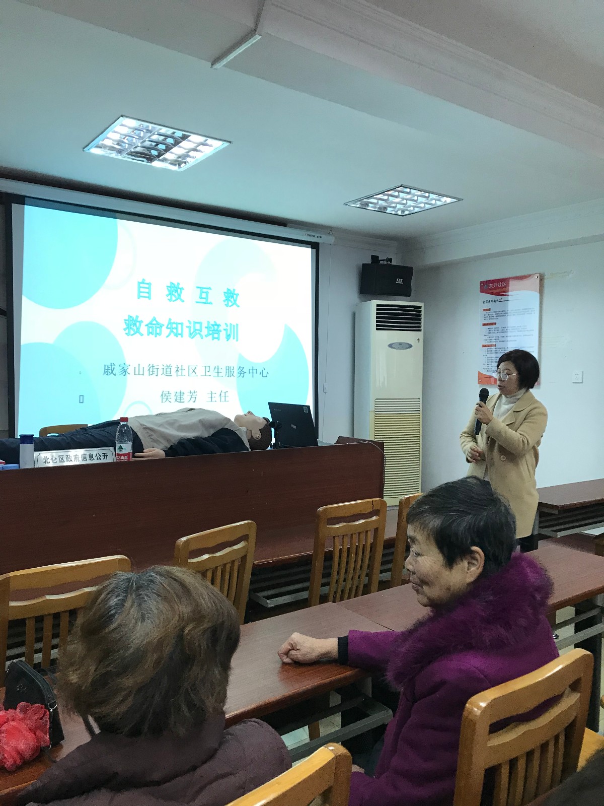 为提高居民自救互救能力,12月20日上午,在社区开展了自救互救应急知识培训,特邀戚家山街道社区卫生服务中心主任侯建芳为社区居民授课。