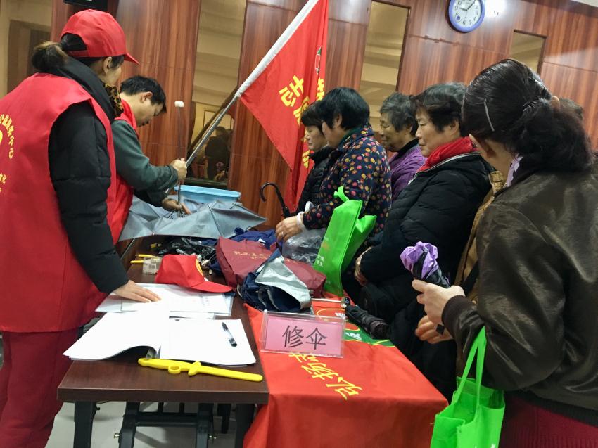 来自各行各业的志愿者聚集在一起,有磨刀、修伞、健康理疗、口腔健康医疗、养老宣传、理发、清洗眼镜、小家电维修、写春联等等各种便民服务正在庄市社区多功能厅如火如荼地开展着。
