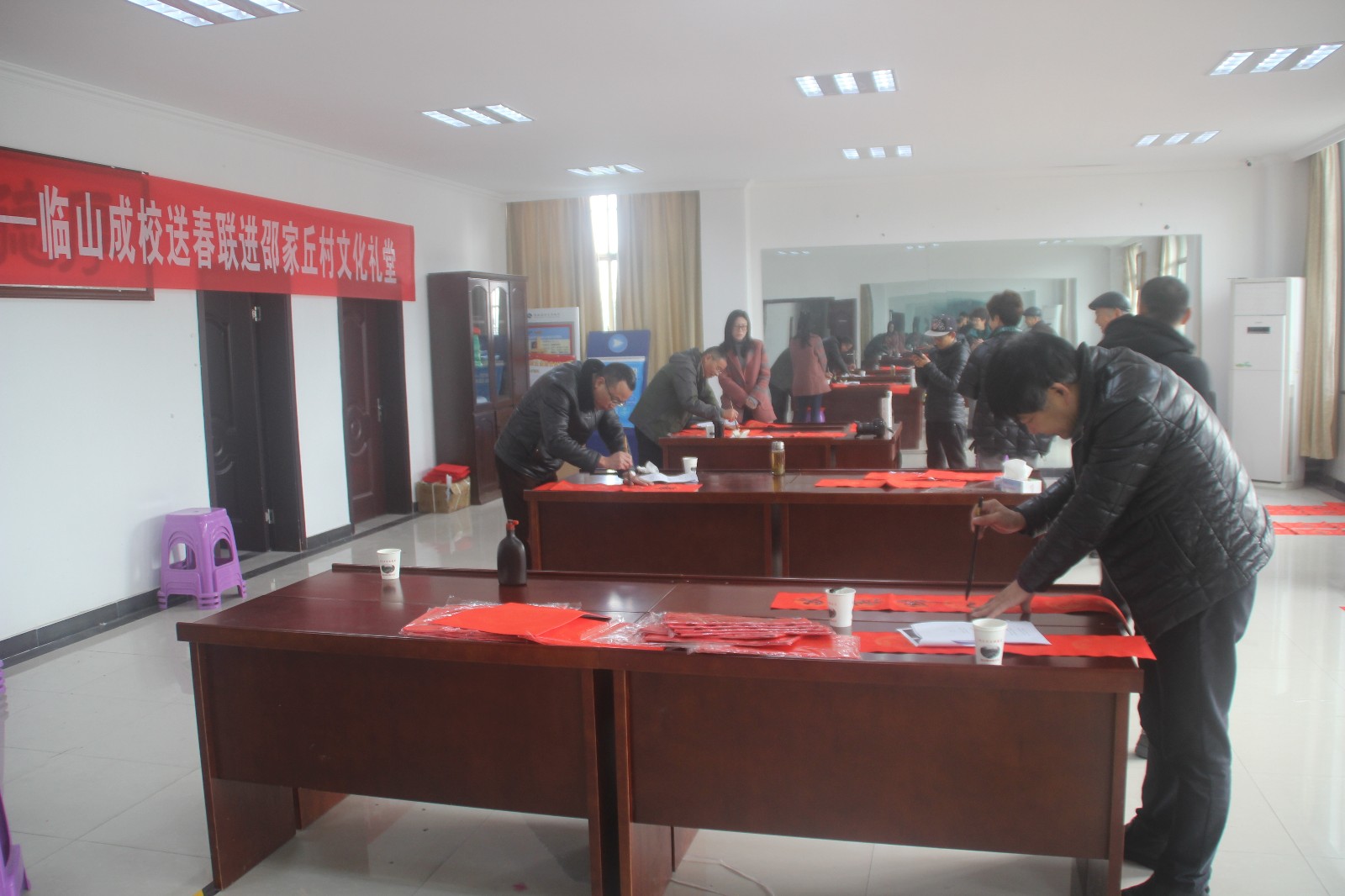 12月27日上午,临山镇成校组织本校老年大学书法教师及印泉书画协会部分老师走进临山镇邵家丘村,为敬老院老人、社区居民写春联,贴春联,在农历新年来临之际为村民们送去了浓浓的祝福!此次活动,是继该校12月26日湖堤村送春联后的又一场社区教育进文化礼堂活动。据统计,该校在2019年组织社区教育进文化礼堂活动次数达33次,收到百姓的广泛赞誉。
