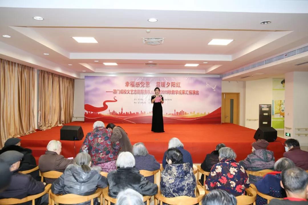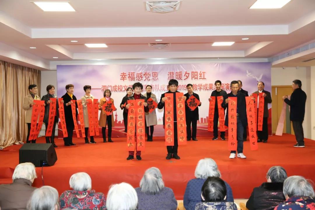 伴随着新年的脚步,承载着勤奋耕耘的喜悦,一学期快乐而充实的学习生活圆满结束了。12月26日,泗门成校2019年秋“幸福感恩党 温暖夕阳红”教学成果汇报演出,联合镇社区教育中心、镇计生协会,走进泗门老年公寓,同这里的老人以及本镇失独老人代表一起,度过快乐美好的时光。