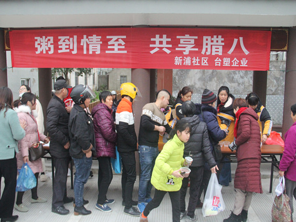 又是一年腊八到,粥香四溢福满城。日前,新浦社区和台塑企业在新建的口袋公园联合开展“粥到情至 共享腊八”广场送粥活动,为过往路人、爱心食堂老人及辖区辛勤工作的环卫工人送上热腾腾的腊八粥,让辖区群众感受冬季里的暖意。