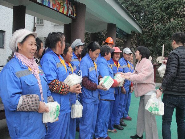 此外,新浦社区党委书记谢芳芳等还特地准备了暖粥和年糕,送到在寒冬辛勤工作的环卫工人的手上,感谢他们一年来为维护整洁优美的新浦区域环境作出的努力。