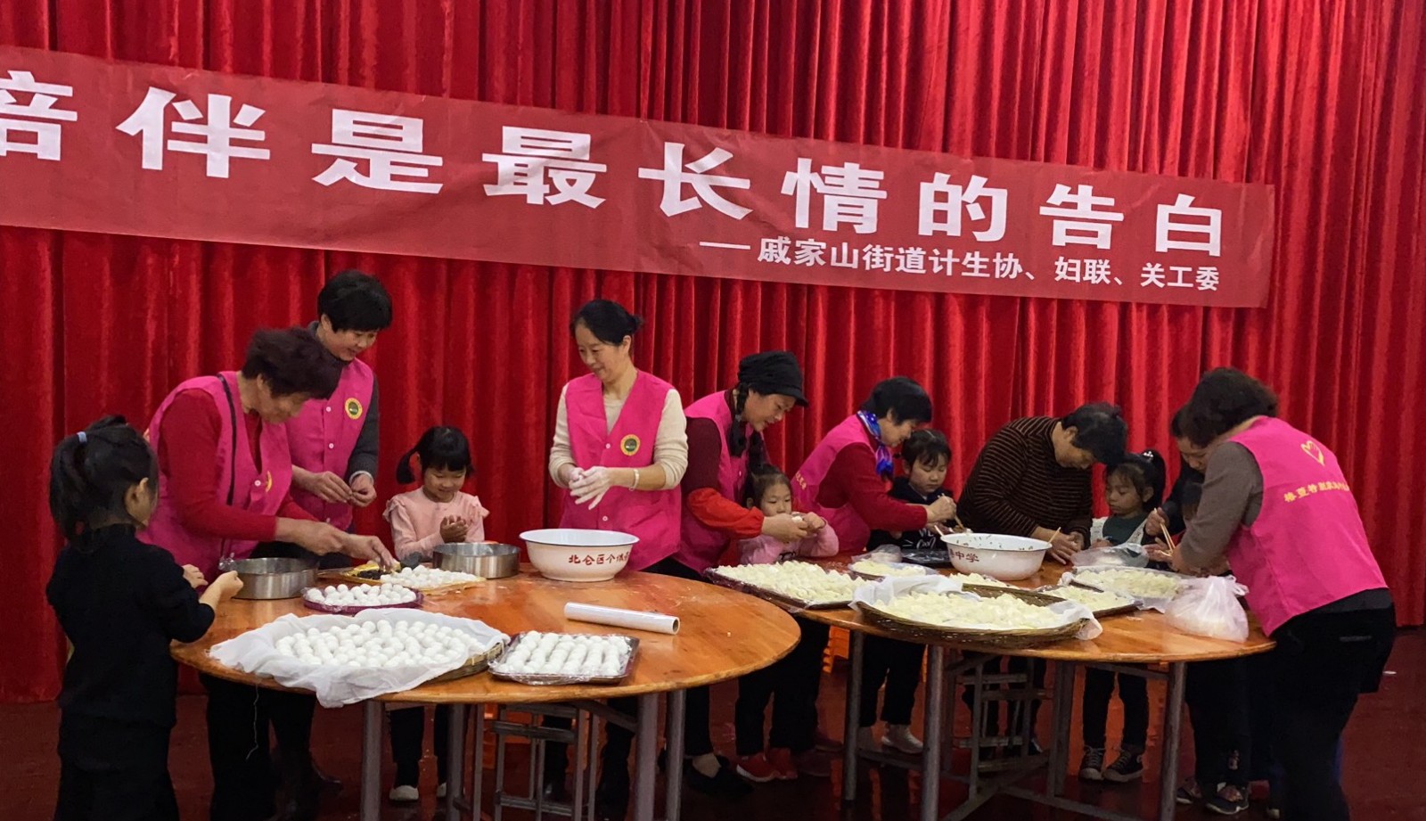 1月8日,虽然外面寒风凌冽,但东升社区文化大礼堂内却温暖如春、欢声笑语,10多位椿萱志愿者和8个开发区幼儿园小朋友将陪伴辖区内的8户计生特殊家庭吃上一餐愉快而又难忘的年夜饭。这是戚家山街道计生协携手街道妇联、关工委共同举办的“陪伴是最长情的告白”年夜饭活动,也是第五个团圆饭。