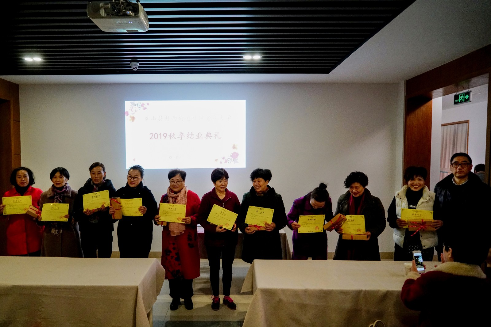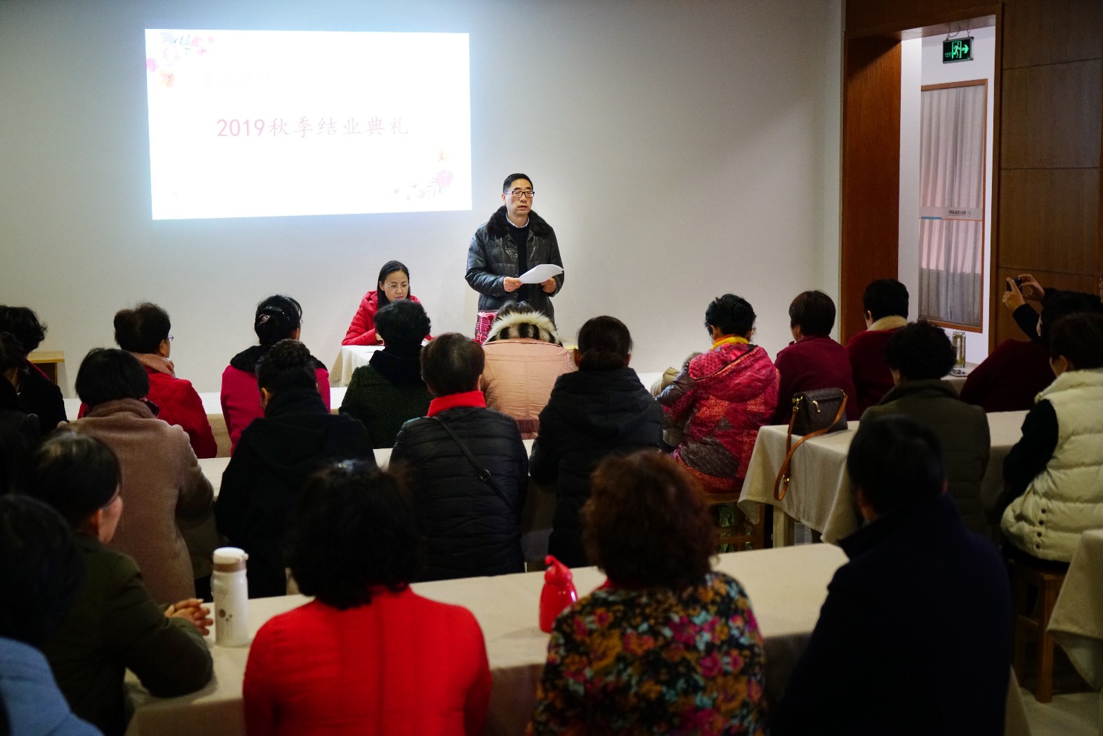 1月8日上午,丹西街道社区老年大学2019年度结业典礼暨表彰大会在d丹西成校活动中心举行,黄永江校长对老年大学一学期的教学工作做了总结,并为顺利结业的各位学员颁发了结业证书。结合手机摄影班“优秀作品征集赛”和健身舞班舞蹈考核活动,学校表彰了一批优秀的学员。结业典礼结束后,为进一步做好老年大学工作,学校发放了问卷调查表,积极向学员征求教学情况、满意度及下期开班类别等方面的详细调查。