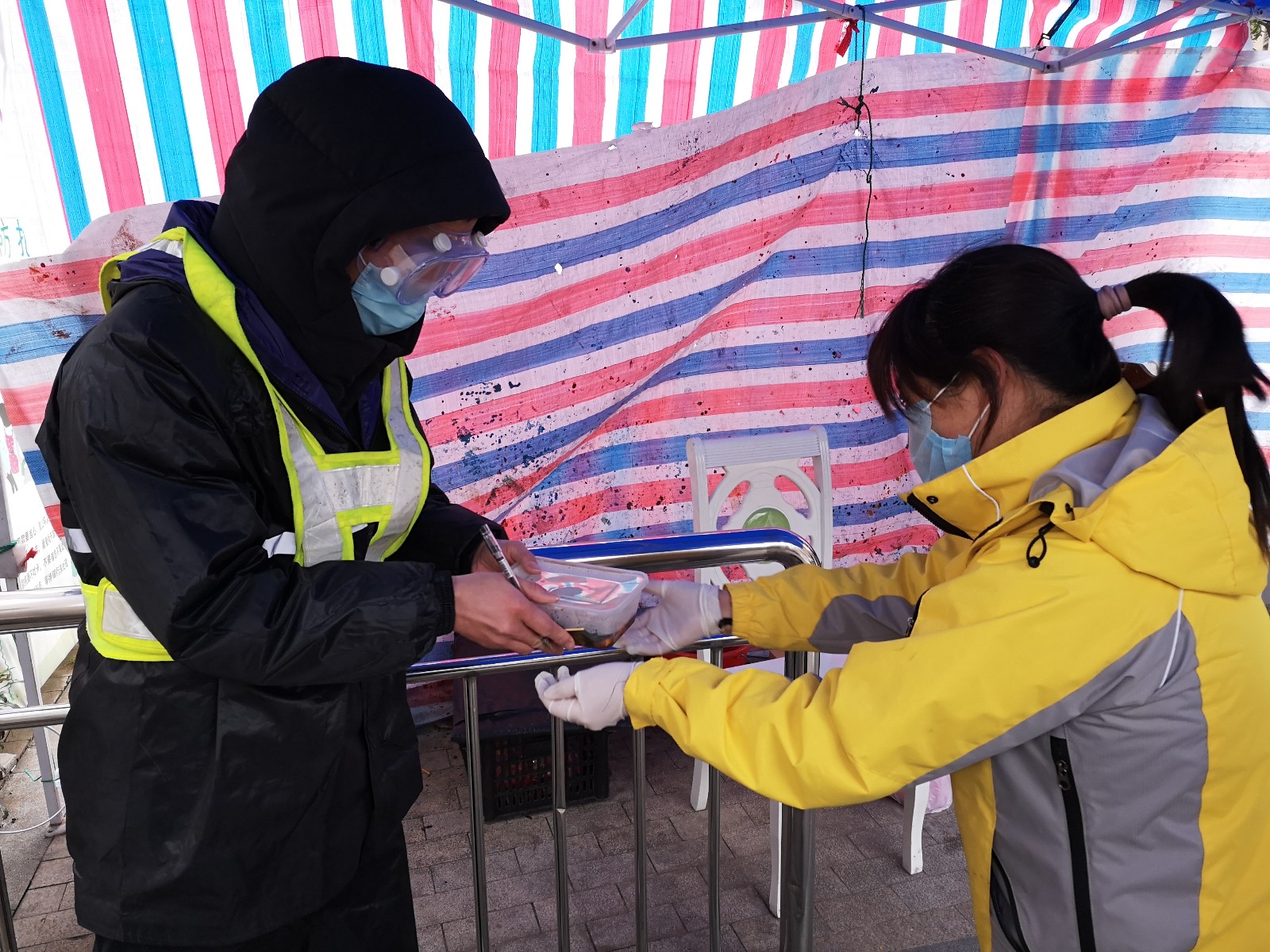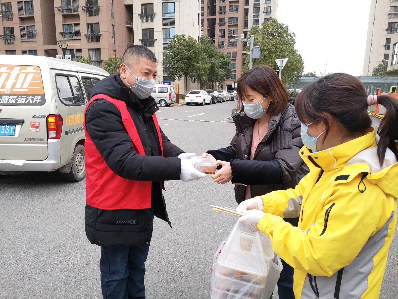 “大家辛苦了,这么冷的天,一直守在门口,来吃口热的,暖和暖和。”社区党支部书记宋颖和爱心企业一起,将一盒盒热乎乎的烤菜年糕送到了物业、保洁、保安等一线工作人员和志愿者的手中。“我就住在这里,每次回来,看到门口的工作人员和志愿者,真心觉得辛苦,我们就想着尽自己的力量为他们做点微不足道的事。”爱心企业相关人员在家中煮了烤菜年糕,装盒后立马送了过来,就为了大家能够吃口热乎的。