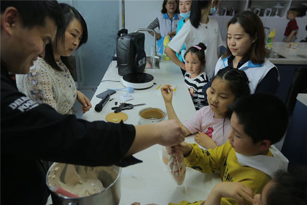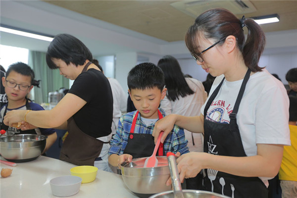 活动当天,大家把烘焙所需要的工具准备齐全,然后迫不及待忙活开了。有的分离蛋清、搅拌、发酵、将水果去皮切丁;有的凹造型;有的挤奶油,都是细致活。经过了两个小时,奶香肆意的“作品”纷纷出炉了,大家品尝着美味的蛋糕、饼干,享受着甜蜜的亲子时光,共度幸福家庭日。