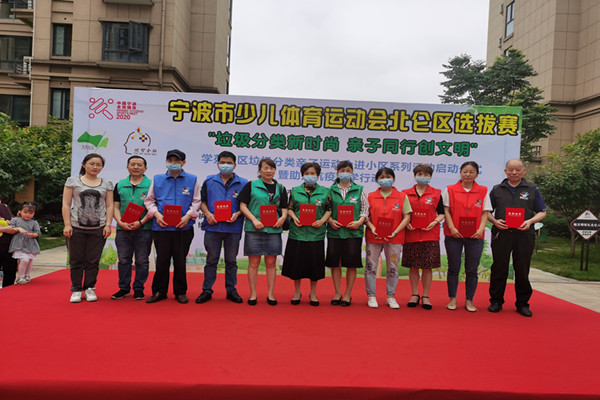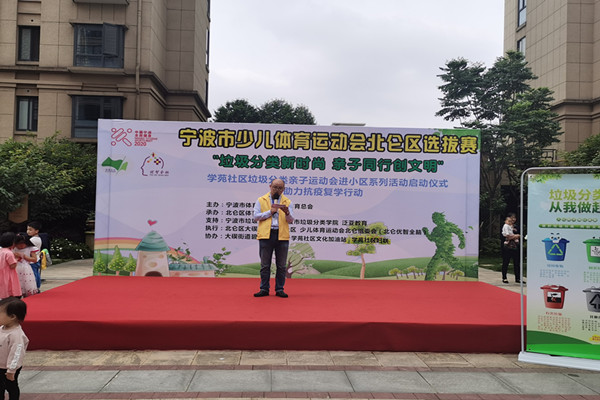 为深入开展垃圾分类工作,进一步提高家庭垃圾分类意识,5月31日上午,由宁波市体育局、宁波市体育总会主办,北仑区体育局承办,北仑区大碶社区教育学院学苑社区分院协办,主题为“垃圾分类新时尚 亲子同行创文明”庆六一亲子运动会在大碶街道碧玉园小区顺利举行,来自学苑社区的40余组亲子家庭,其中包括2组少数民族家庭,共有100余名孩子和家长参加。