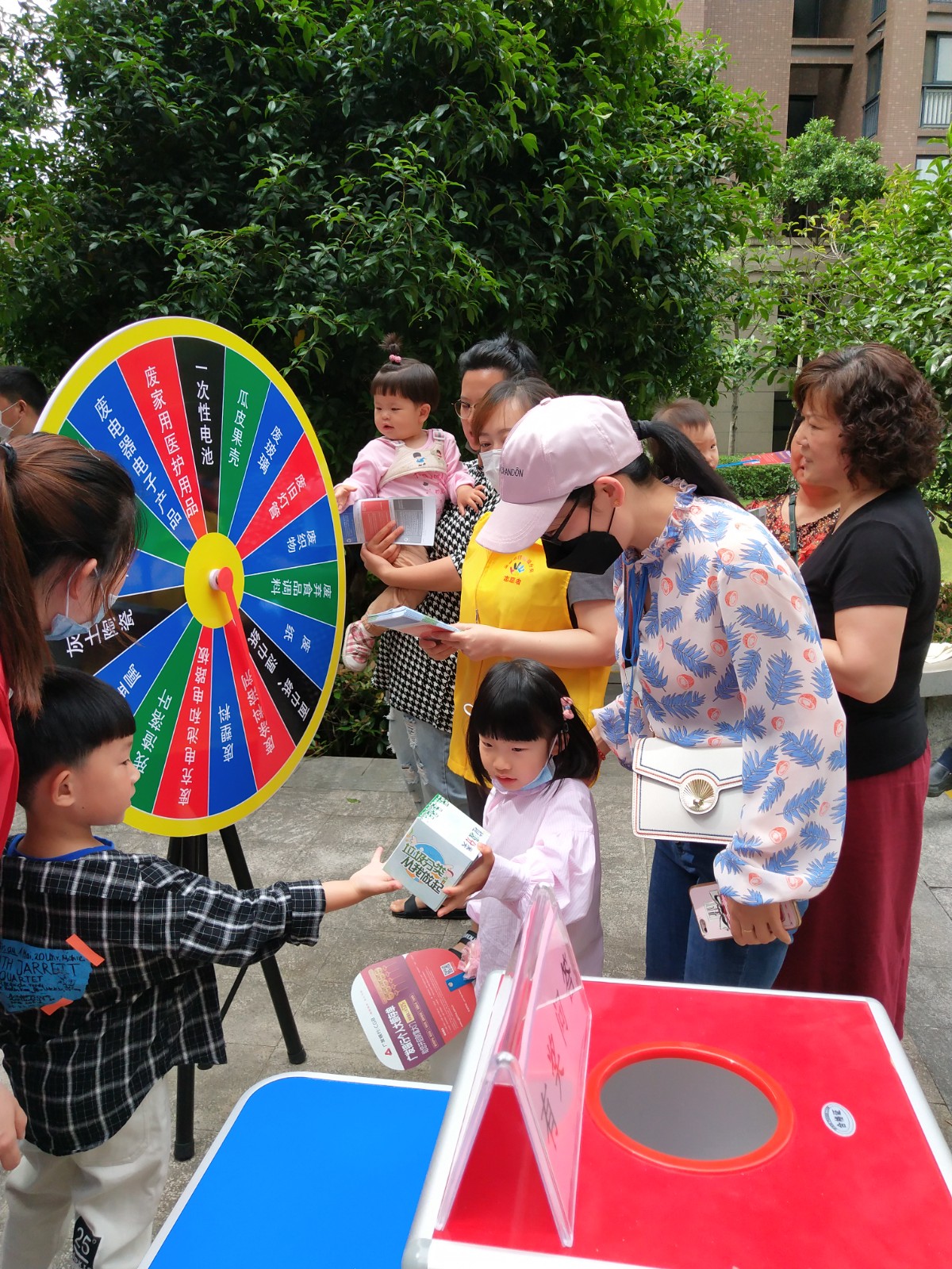 5月23日上午,骆驼街道静远社区在海尚广场小区开展“线上+线下共同推进 垃圾分类你我同行”的主题宣传活动,居民们全家出动,踊跃参与线上线下答题活动,长知识,拿奖品,体验垃圾分类。为扩大参与人群的覆盖面,社区工作人员为老年人设置了垃圾分类知识现场抽答,为小朋友制作了趣味大转盘游戏,还在业主微信群中开展了知识抢答。