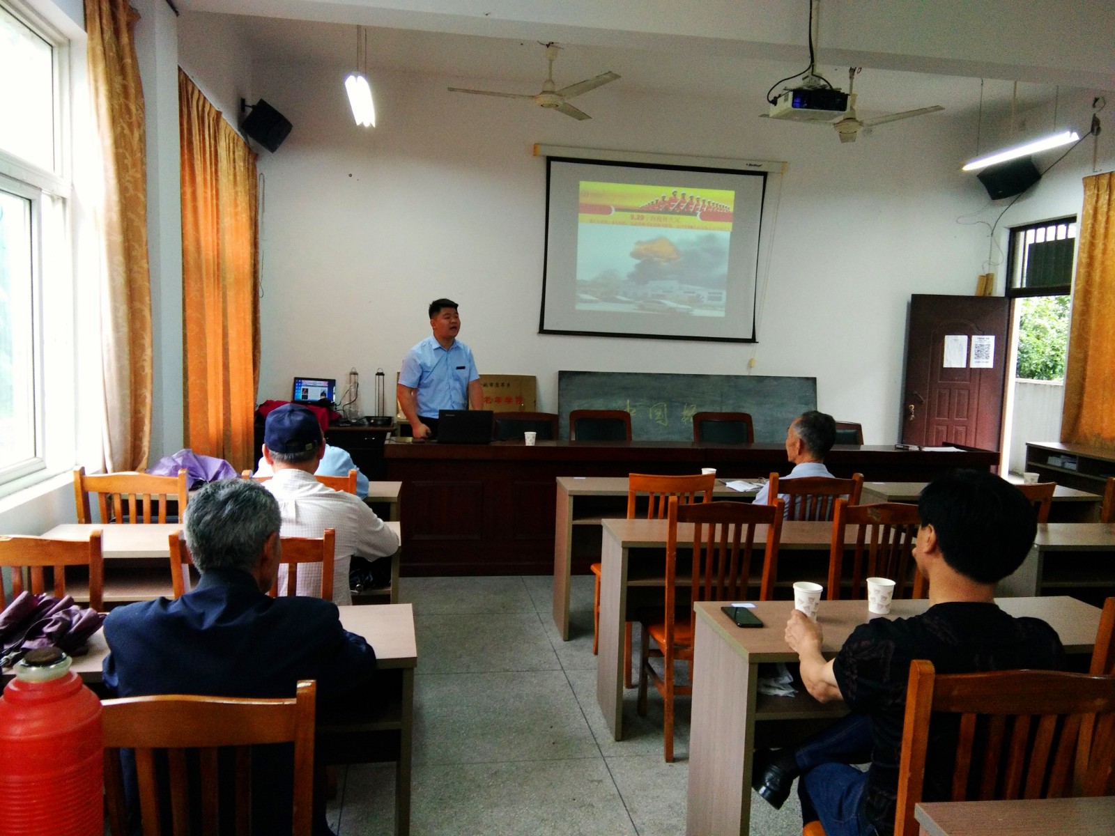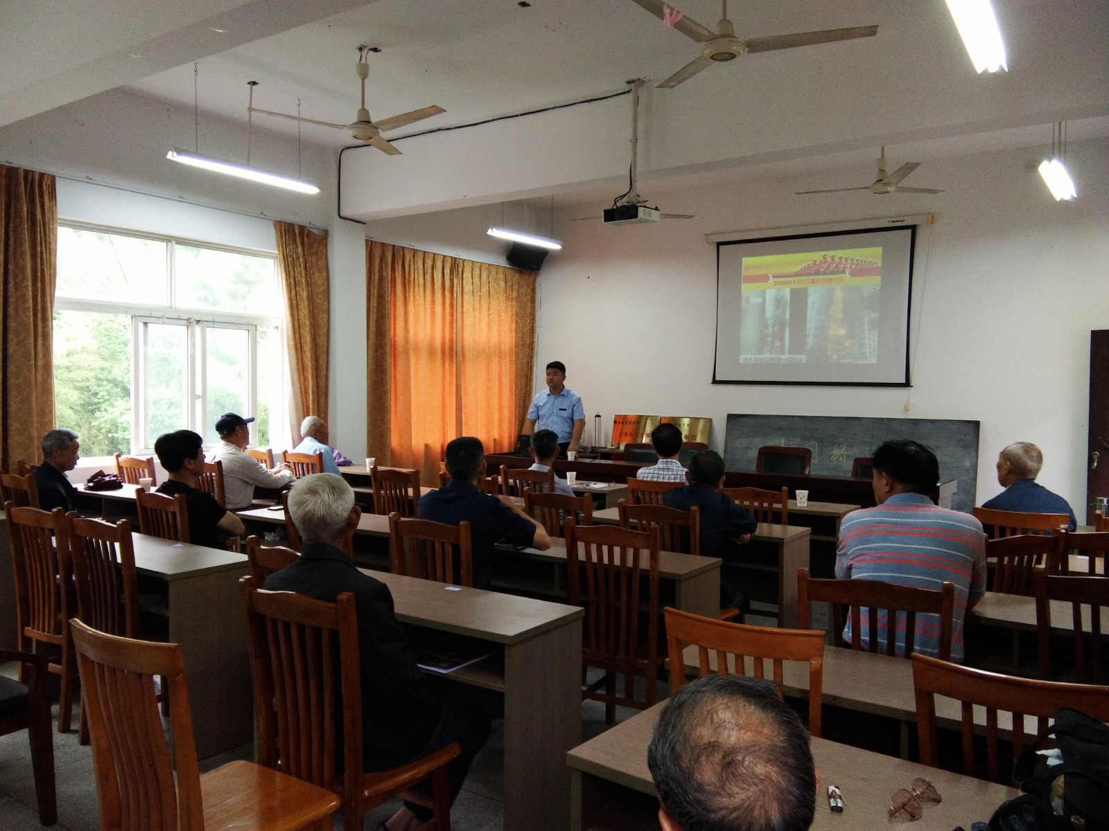 此次培训由宁波民安防火宣传服务中心何教官主讲,主要向老年学员们介绍了近年来附近地区发生的一些典型火灾事故的案例,火灾事故的种类及起火的原因,火灾的预防及灭火知识等。