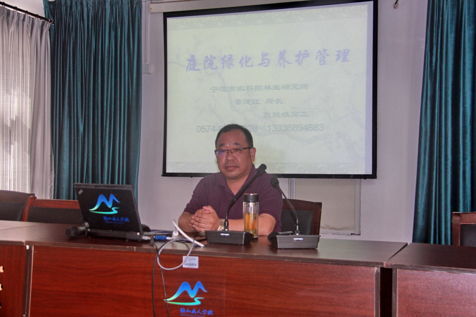 本次讲座邀请了宁波市农科院林业研究所章建红所长来授课。课上章老师采用PPT形式讲解着绿化养护的实际情况和高速绿化养护的特点。章老师从专业的角度,理论联系实际,重点围绕花卉苗木的栽植、季节性养护技术、土壤与环境的关系、花卉苗木的修剪技术、常见病害的预防措施等等进行阐述。老师讲座言简意赅、深入浅出,让零基础学员也能够听得懂、听得明白。此次培训内容务实,具有较强的实用性和可操作性。