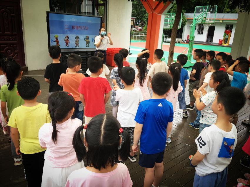 首先,区消防大队黄一琦老师对大班幼儿及教师进行了专业消防知识培训。老师从火灾的危害、报警的方法(报警歌)、认识消防标志等三方面进行讲解,并现场积极互动,考测的小朋友对答如流。