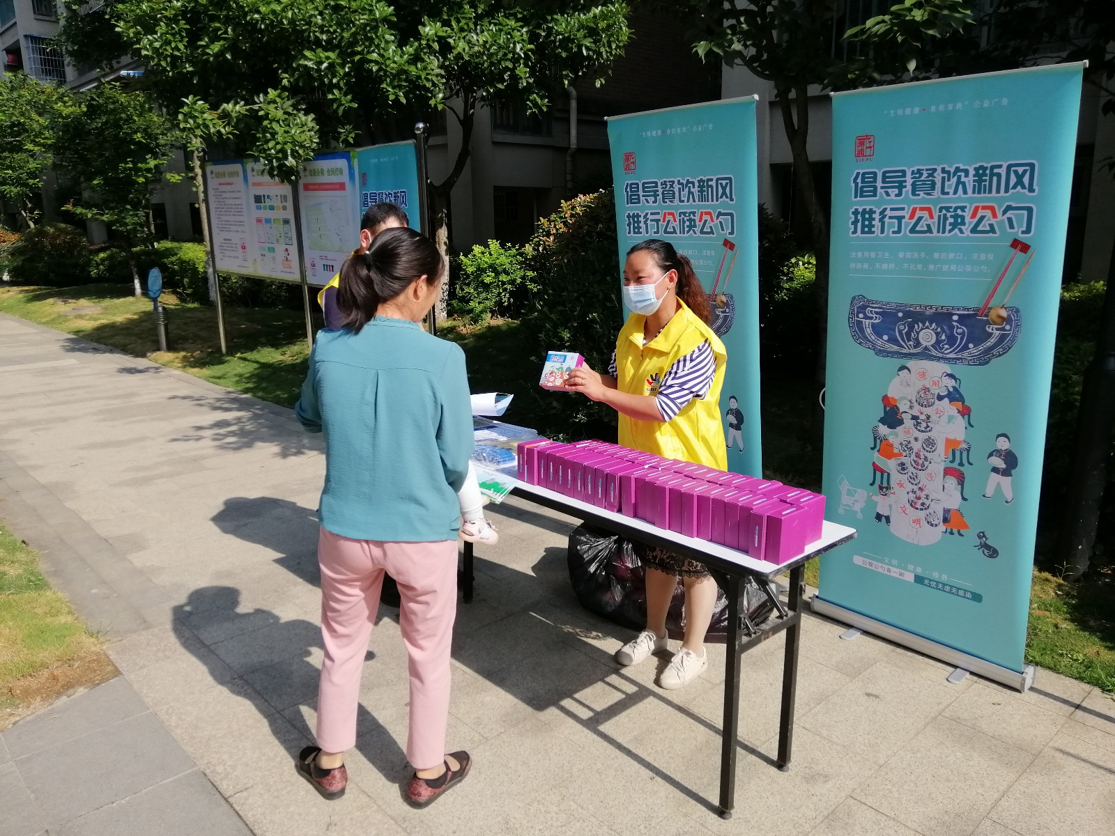 活动中广源社区通过“甬城公筷”展板向居民宣传公筷使用的必要性、向居民发使用公筷倡议书、向居民赠送公筷等活动,让社区居民懂得公筷使用的必要性。