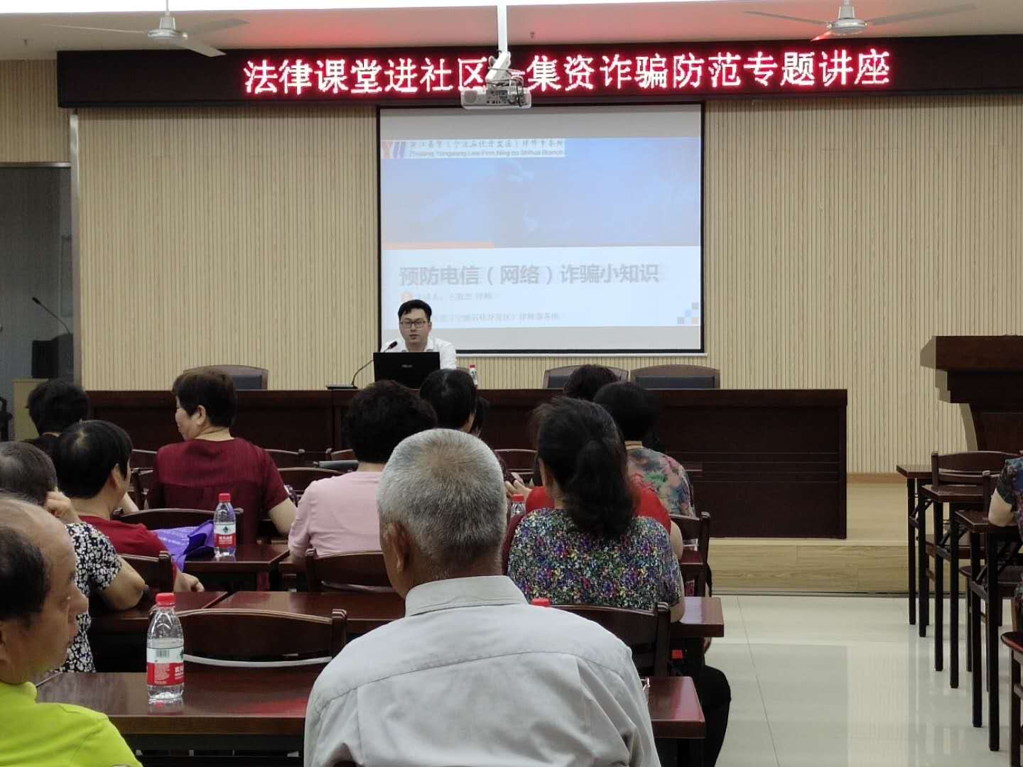 6月11日,为了提高社区居民,尤其是老年居民的防诈骗意识,静远社区特别请来了社区法律顾问王律师给社区的居民上了一堂集资诈骗防范专题讲座。王律师用生动的案例介绍了电信诈骗、电子银行诈骗、自助设备诈骗以及非法集资等诈骗形式;详细讲述了诈骗的诈骗方式、内容描述及其防范措施;通过生活中出现的“电话短信诈骗”、“虚假通知”等诈骗事例,指出现代金融诈骗、非法集资存在的几大特点,并重点讲解了遇到类似情况要采取的防范措施。
