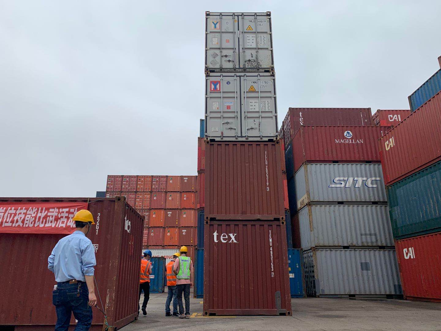 6月9日下午,天翔货柜技能比武之堆高机操作技能比赛在霞浦后山堆场拉开序幕。参赛的全体堆高机驾驶员使用三一堆高机进行比赛。 比赛操作过程从A场地移四个集装箱堆放在B场地,或从B场地移四个集装箱堆放在A场地。比赛计时以起步、结束喇叭声为准。操作动作连贯,堆高机行走平稳,起吊、放下要轻、稳、准。以100分为基准,采用倒扣分形式评分,以扣分最少成绩排名。
