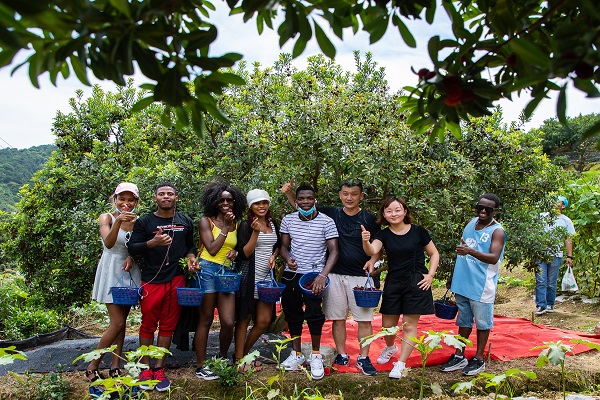 与此同时,杨梅王的评比正在进行中。沿袭往年传统,来自大碶街道横山村、柴楼村、牌门村、金家村、东岙村、青林村的杨梅种植户拿出自己的精品杨梅参加比赛。杨梅品种限定为荸荠种。工作人员从选手带来的杨梅中随机拿出三四颗杨梅,测量重量和甜度,然后每位评委根据杨梅的重量、色泽、质地、风味等4个方面进行综合打分,取平均数,最终横山村种植户顾正大蝉联“杨梅王”。街道党工委副书记、办事处主任孙旭辉更是变身“网红”主播,走进直播间为塔峙杨梅和“塔峙大阿嫂”农特产品“吆喝”带货。现场还邀请网红在抖音和来看直播间互动带货。新鲜杨梅、桂花茶、杨梅酒分分钟售出。四海汇亲朋,八方聚好友,塔峙岙的杨梅林里聚满了宁波晚报的小记者和前来游玩的市民,黑色皮肤的外国友人和少数民族学生尤为抢眼,大家穿梭在梅林中,边摘边吃,趣味十足。社区还精心准备了趣味小游戏,在“好食再来”地摊一条街备下了杨梅酒、桂花糕、新疆大枣核桃等各色美食,让前来游玩的市民大饱口福。闯关挑战游戏、摘杨梅、磨豆浆、做青团、在杨梅树下重温国学经典……受邀参加杨梅节活动的小记者们开启了一日“宝藏游”!