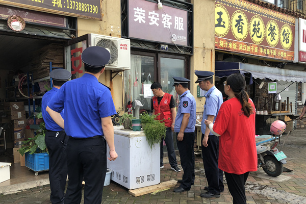 据了解,荣安花园小区商铺占道乱堆放、卫生不整洁等问题比较严重,经网格员多次劝导仍无改善,因此,社区申请开展综合执法整治。执法过程中,城管执法人员与社区网格员先与商铺老板进行沟通,劝导他们主动清理、移除商铺门口的杂物。对于商铺不需要的占道物件,经商家同意后现场进行了垃圾清运。此外,执法人员还对户外广告、“牛皮癣”、侵占盲道等问题进行了整治。