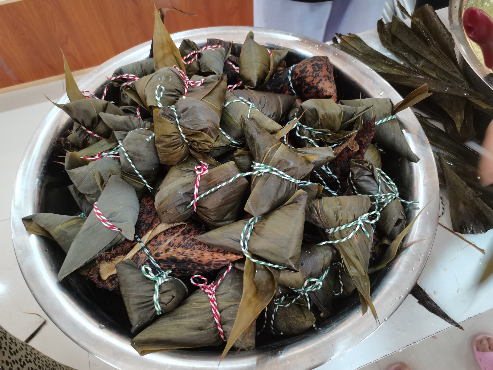 泡粽叶、洗糯米、调碱水,伴随着紧锣密鼓的准备工作,6月17日端午节前夕,贵驷街道里洞桥村文化礼堂里热闹非凡,几十位村民相聚在一起,举办了一场“浓浓端午意,粽子寄真情”端午节包粽子活动。