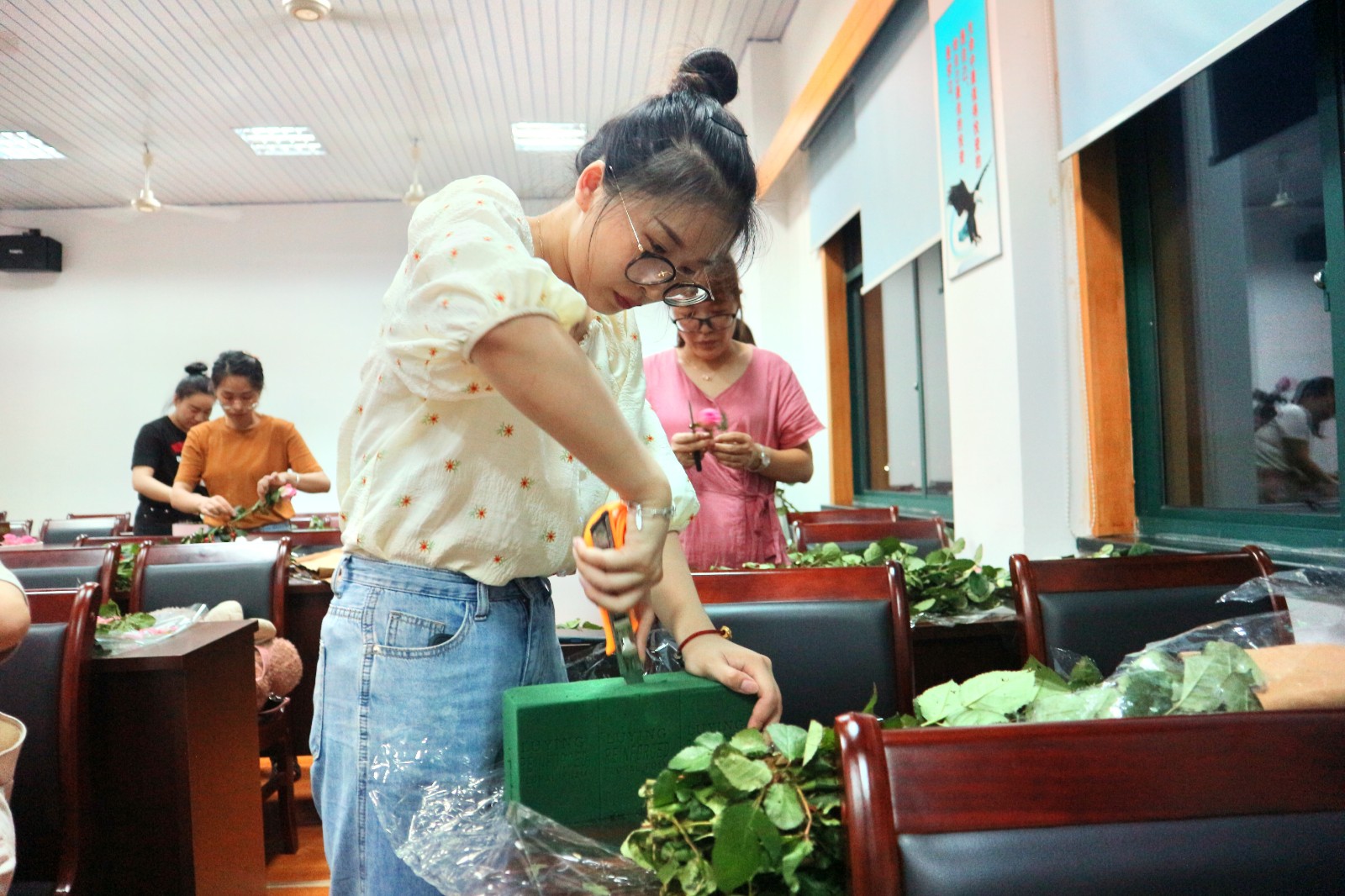 阳光正好,泛着一片生机盎然。绿风轻抚,夏云悠悠,伴着花香和朝气蓬勃的温暖。而转眼之间,已是六月,虽然疫情尚未结束,但生活依然充满阳光。生活中心“泗门成校2020花艺技能大赛”也在这个沃野千里的仲夏,开始了!经过前期的筹备,花艺爱好者们积极报名参加。6月17日晚上,邀请卢苗娟老师在泗门成校四楼培训教室为报名学员上了一堂有意义的插花培训。