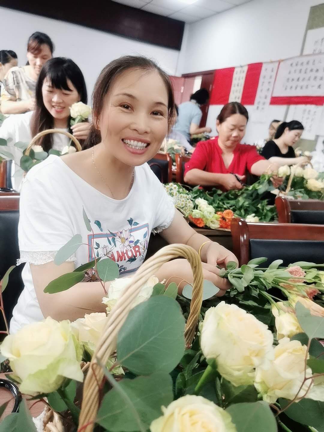本次培训邀请了余姚市莲语花堂花艺师朱学庆老师讲解插花知识和技巧。朱老师对不同种类的鲜花进行了详细的介绍:吉祥如意的百合、真情母爱的康乃馨、思念祝福的相思梅、温柔感激的戴安娜玫瑰、阳光快乐的扶郎……活动现场鲜花簇拥、芬芳满屋。在朱老师的指导下,大家修剪花枝,搭配花朵,边插花边交流心得,一个个漂亮的花篮作品在欢声笑语中诞生,花香与浓情洋溢在现场的每个角落。