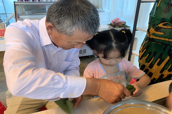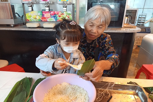 一大早大家来到玫瑰庄园,工作人员端出早已准备好的糯米和粽叶,五老志愿者们马上上手,和小朋友们一一结对,一边给他们讲端午节吃粽子的由来,一边手把手教他们装米、打包、捆绑,不一会儿功夫,一个个可爱的小粽子成型了。随后,小朋友们拿着自己包的粽子和五老人员进行了合影。接下来,到端午节小知识竞答环节,现场人员都踊跃参赛,积极抢答。“感谢社区提供这样的机会让小朋友可以跟爷爷奶奶们学习包粽子,能包多少粽子、答对多少题不重要,重要的是让他们能明白端午节这个传统节日的重要意义。”居民董京花说道。