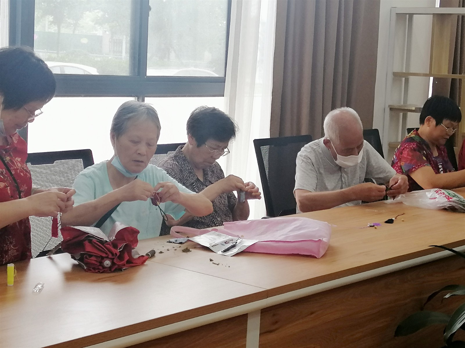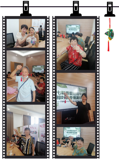 此次活动分为制香囊·迎端午、挂艾草·香满邻、棕香浓·传文明。阿姨们以其精巧的手艺缝制七彩香囊,选择自己喜爱的香料填入其中,织成小巧玲珑的香囊,精致可观。“把两片粽叶重叠,弯曲成一个漏斗的形状,再舀一些糯米,放上一颗蜜枣,再放些糯米填满,用手捏紧,接着,将上面的粽叶向下压住开口处……”阿姨们对于包粽子可谓是得心应手,不在话下,短短的时间,一个个粽子就成型了。
