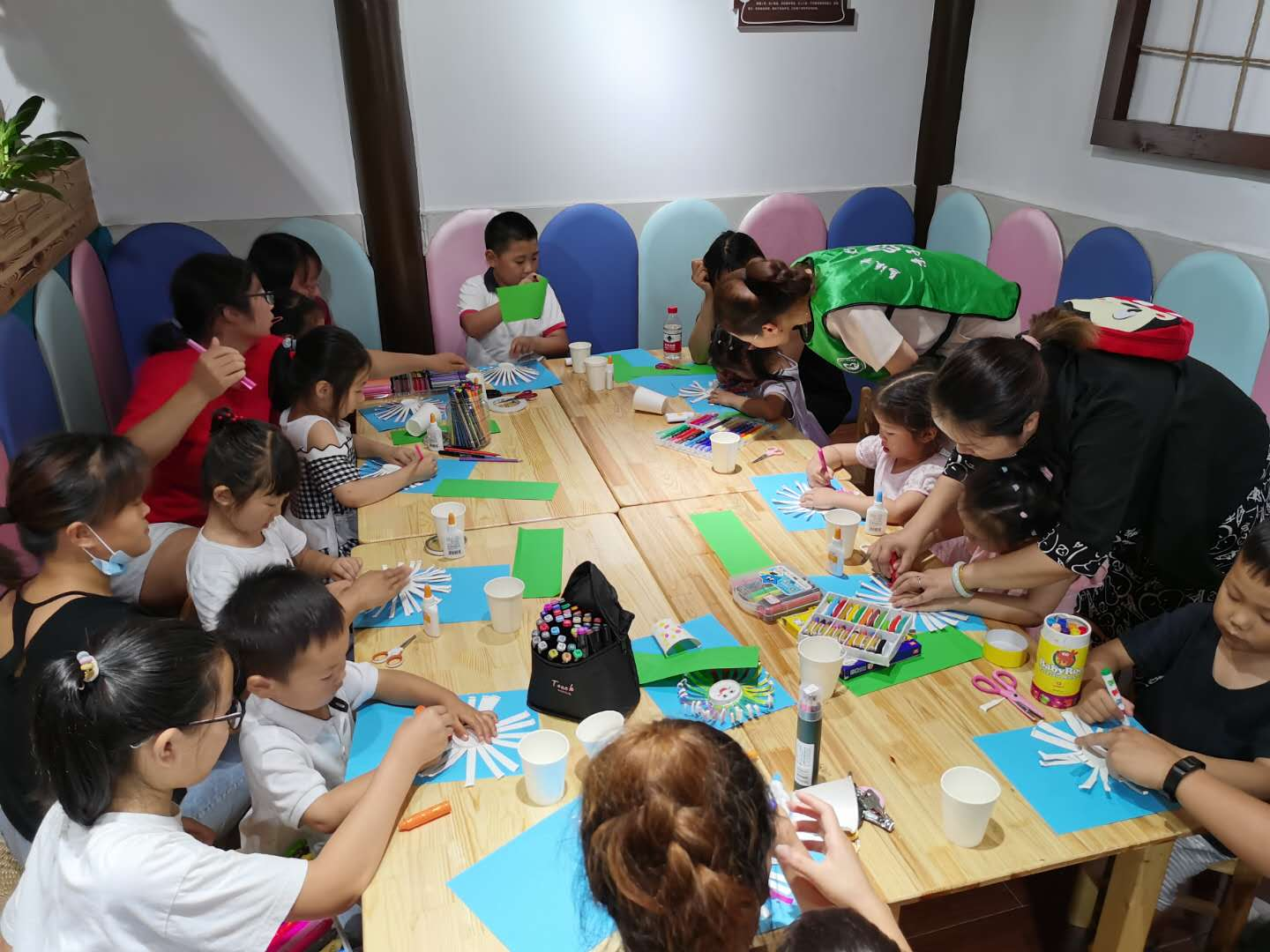 在对绘本意犹未尽的时候,进行了创意美工环节。格格妈妈讲解完制作花的步骤后,孩子们在家长们的帮助下,一朵朵漂亮的彩虹色的花就出现了。在展示自己的彩虹色的花的时候,小朋友们别提有多么自豪了。