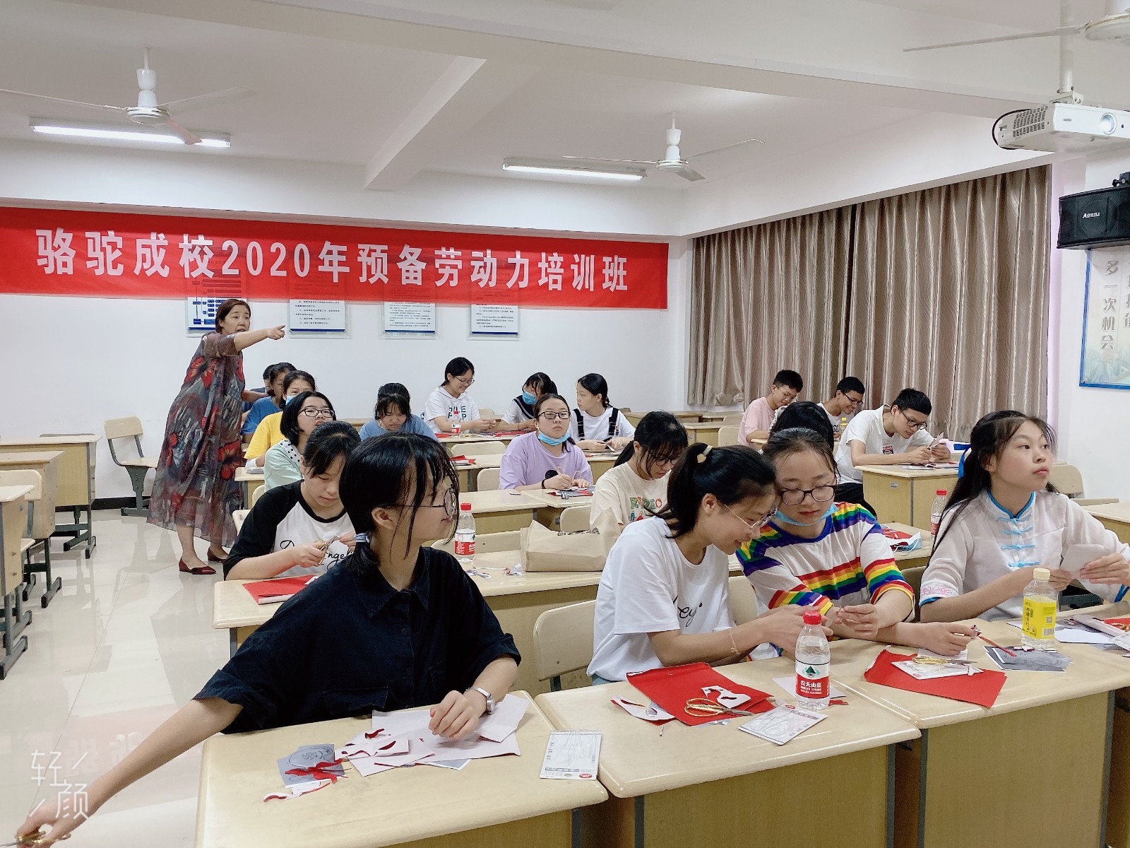 为提高农村预备劳动力的职业技能素养,每到一年毕业季,骆驼成校都会联合骆驼实验学校,组织部分初中应届毕业生开展农村预备劳动力专业技能培训。培训分集中面授、实践操作二个部分。培训内容包括职业道德、西点制作、艺术插花,剪纸四大块内容。