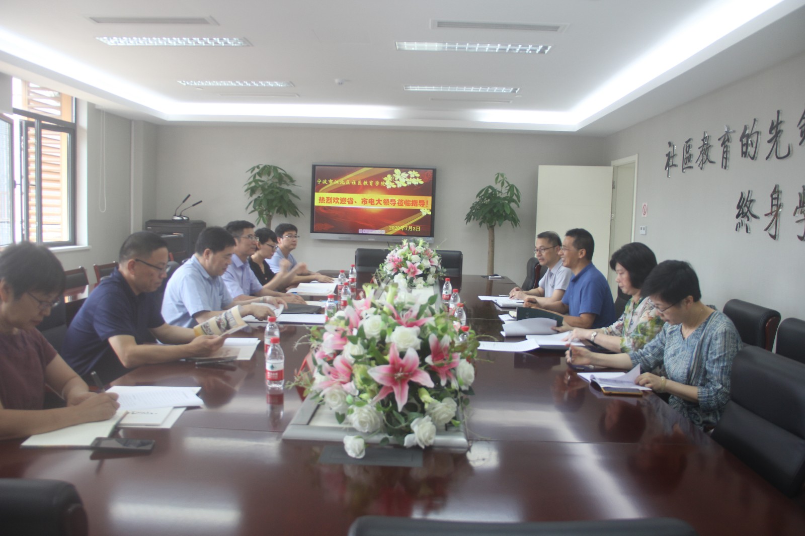 7月3日,浙江广播电视大学党委书记徐公芳,终身教育研究院院长杨淑珺和党政办副主任方伟军在宁波广播电视大学校长黎群、副校长陈曙的陪同下,来到江北社区教育学院调研指导社区教育工作。