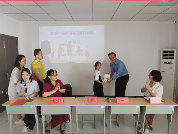 7月8日,新浦社区假日学校举行了开学典礼暨开学第一课。霞浦街道办事处社会事务服务管理办副主任毛裕胜,台塑企业管理部处长刘一平,霞浦街道关工委负责人郑和平出席了仪式。
