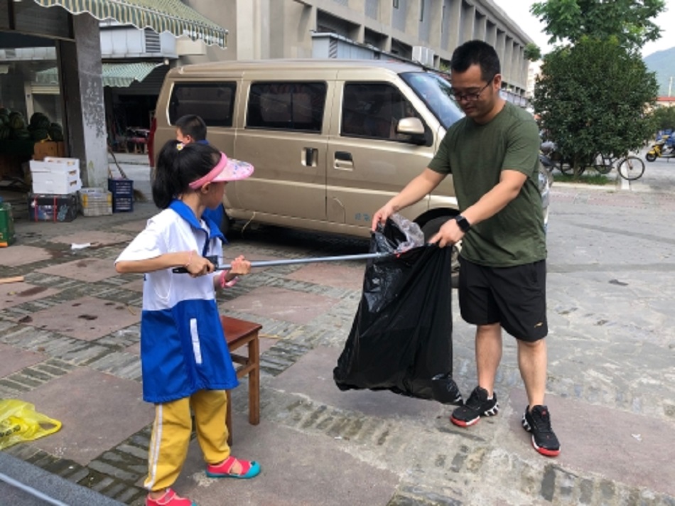 北仑区春晓街道“蓝海豚”公益联盟开展大手牵小手捡垃圾活动