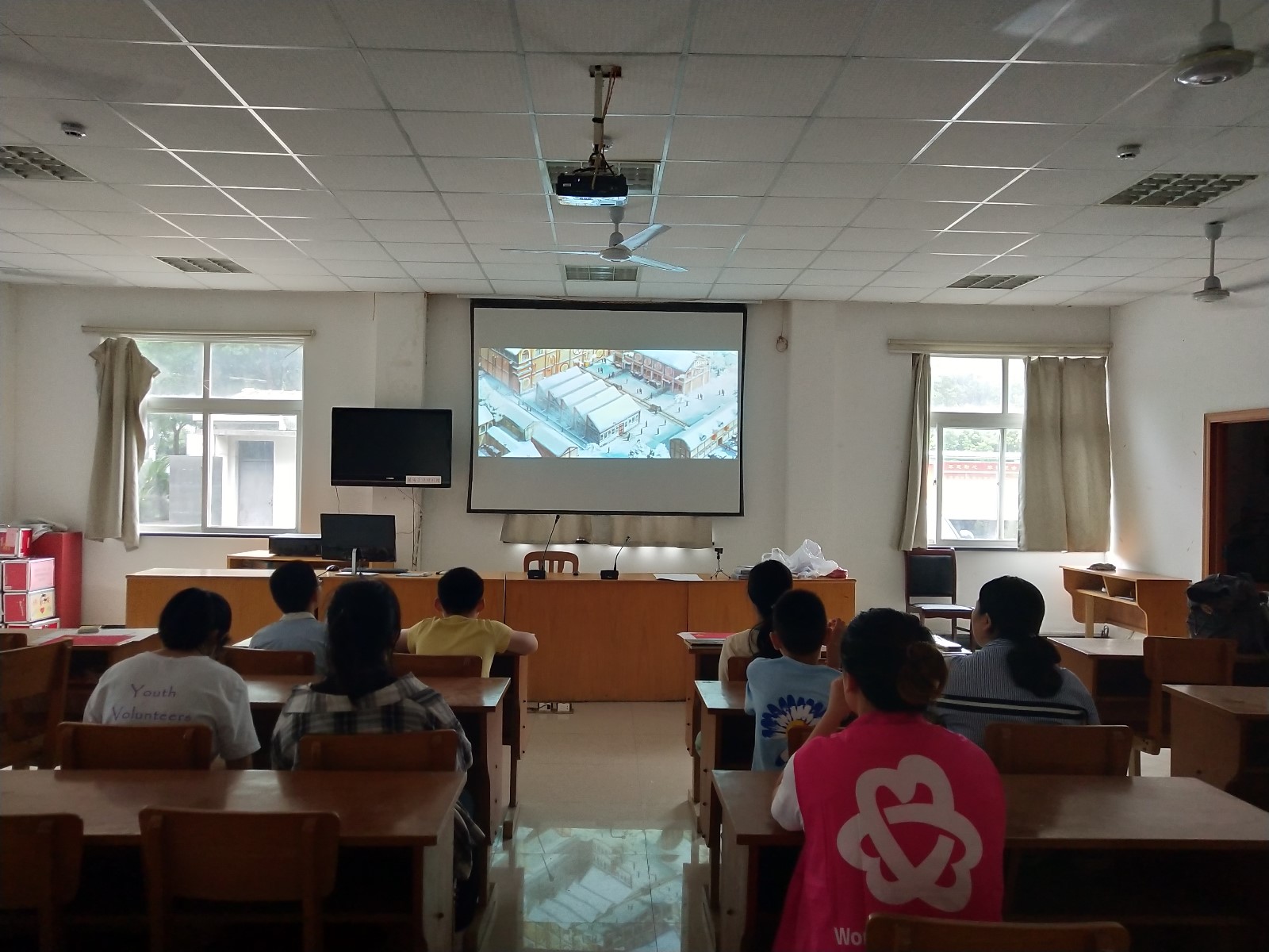 活动分为两个部分,首先由志愿者教青少年正确认识国旗、绘画国旗,并探寻国旗背后的革命故事与涵义,引导青少年当红色基因的传承者、实践者。过后,志愿者带领青少年一起观看动画《江南》,该片讲述了清末上海一个顽皮少年阿榔阴差阳错进入江南制造局成为学徒,在师父陈铁寒的谆谆教导下,阿榔潜心学习机造技艺,逐渐成长为顶尖机匠的故事。小朋友们从中可以看到中国民族工业的精神,从历史里找到中国军工业从学习到自主研制的图强之路。