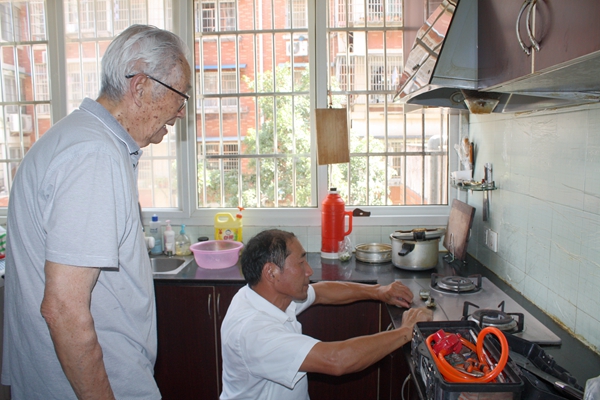 义工师傅对老人家中的天然气阀门、燃气胶管、连接处管箍等进行全面检查,干老伯家里的燃气设备存在问题,师傅仔细地进行了检查和调整,“家里燃气设备火焰不太正常好久了,也不知道是什么问题,现在师傅替我们调好了,用起来顺手多了,也更加安全。”干老伯感激地说道。