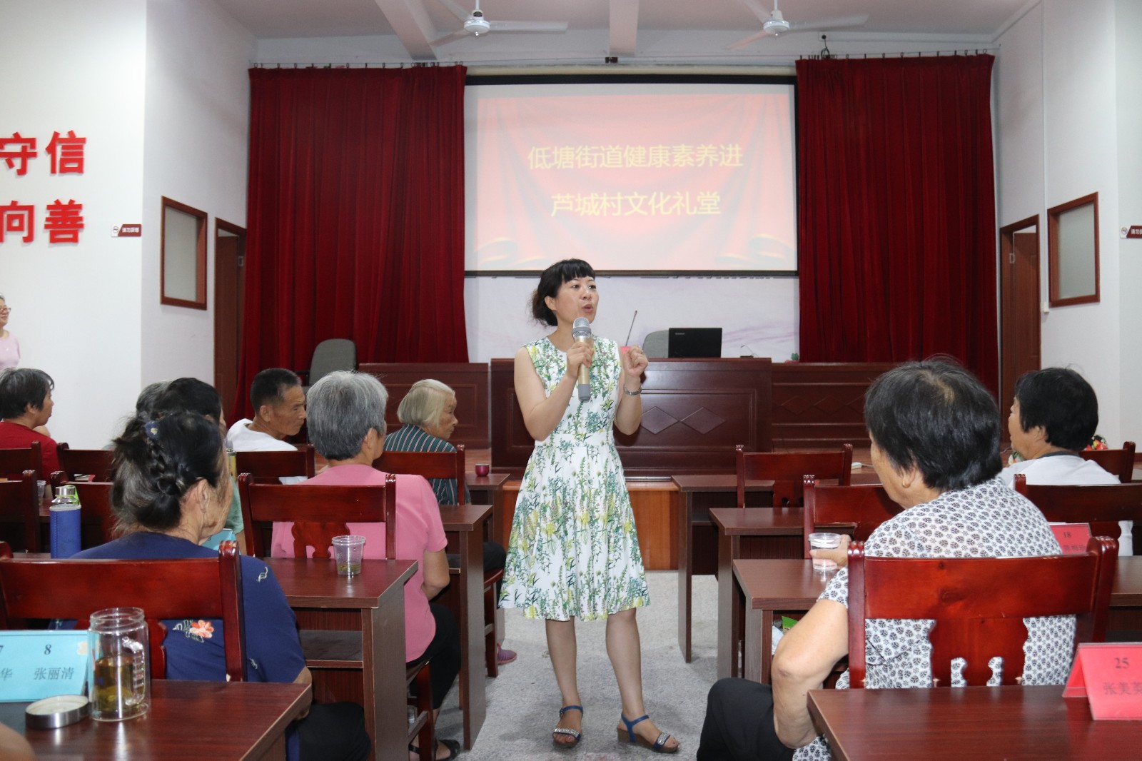 今天上午,余姚市低塘街道社务办、街道老龄委、低塘中心卫生院联合开展了健康素养进芦城村文化礼堂活动。184名老年人在村老年学校听取了健康知识讲座。低塘中心卫生院公共卫生科陈建证科长讲解了常见的意外伤害、新冠肺炎防控和公共卫生等相关方面的知识;卫生院张颖副院长向老年人介绍如何养成健康的生活方式。上课前,卫生院的医生们还为学员们量体测、测血压、测血糖,受到老年学员的欢迎。据悉,此次活动正值2020年低塘街道老年健康宣传周。