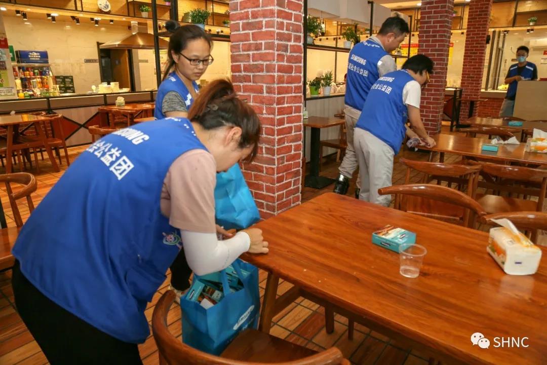 8月28日,三星重工业(宁波)有限公司公益团在戚家山街道的环山路上,开展了一场别开生面的“节约粮食”公益宣传活动。来自公益团的20余名志愿者热情地邀请了环山路上近50家的餐饮店加入到节约粮食社会公益活动中,并在餐饮店内张贴了“节约粮食”宣传语,摆放了印有宣传语的纸巾和开瓶器,倡议大家养成勤俭节约的好习惯。