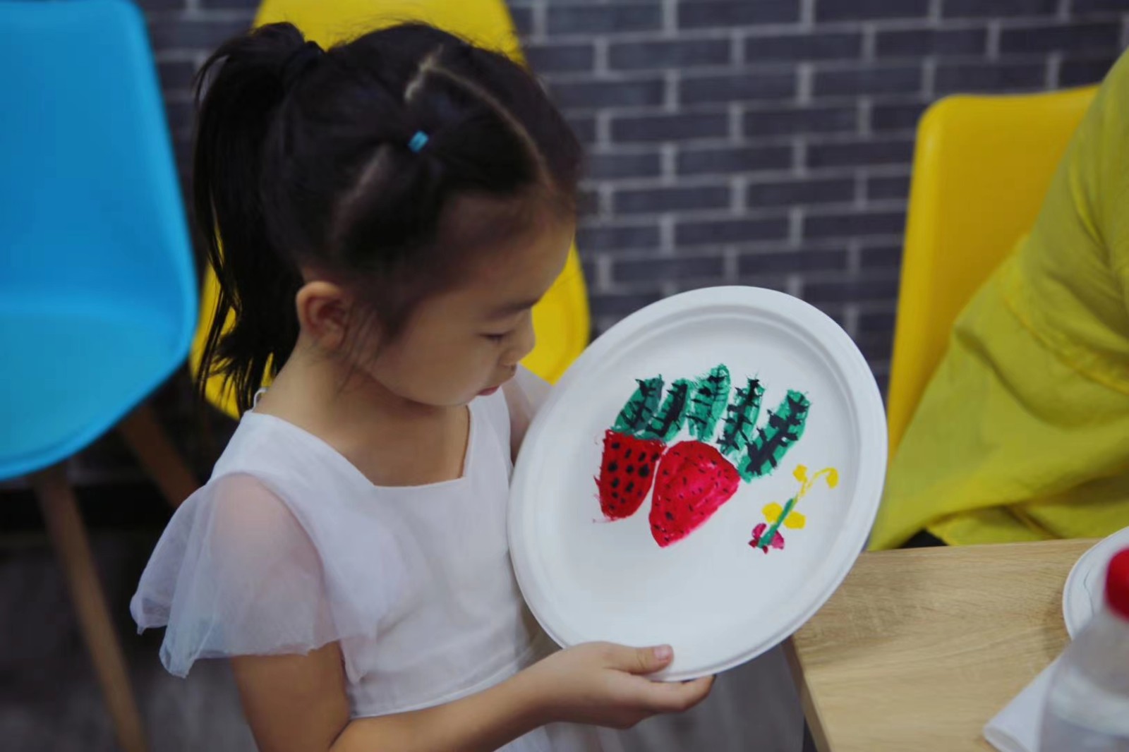 “锄禾日当午,汗滴禾下土。谁知盘中餐,粒粒皆辛苦”在金老师的带领下,活动以一首郎朗上口的古诗拉开了帷幕。大家手持画笔,在盘子上勾出图案,用水粉填满颜色,用一幅幅生动的图画,表达着自己对于“光盘”的理解及对勤俭节约美德的追求。