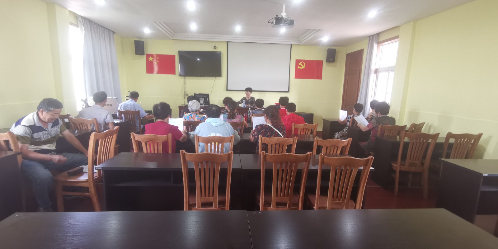 今天,位于龙山镇社区教育学院的甬剧班教室传来了袅袅乡音,30名热爱甬剧的老年大学学员在陈国奋老师的指导下,开始了今天第一节课的甬剧学习。今天学习的是龙山甬剧爱好者自己创作的《龙山美》。