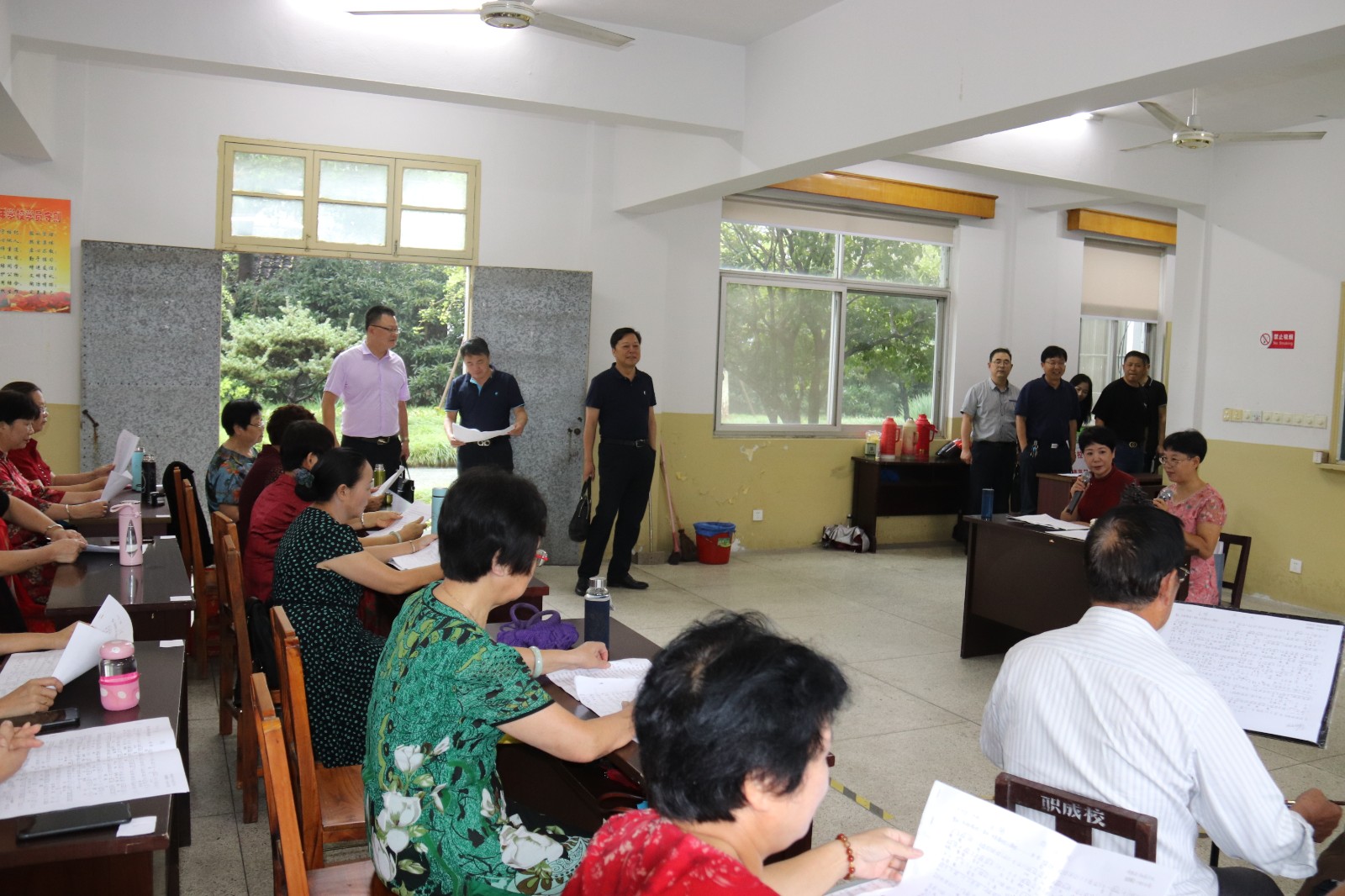 评估组先实地考察了街道黄湖村老年学校,听取了老年学校茅忠坚校长的办学介绍,并参观了老年教室、图书馆、国学馆、阅览室等场所。在低塘成校,蒋校长带领评估组查看了学校的云教室、烘焙房、育婴室、社团工作室等教室,还观摩了夕阳红学习社团越剧学唱课。蒋校长向专家组介绍了成校指导村级老年学校的办学理念和办学经验,上规模的老年学校还有芦城村老年学校、黄湖村老年学校、镆剑山村老年学校、低塘社区老年大学、低塘成校夕阳红学习社团等。在督导评估会上,蒋校长做了《夯实基础、砥砺前行、促进农村老年教育可持续发展》的汇报。他从“低塘老年大学基本情况”、“低塘老年教育可持续发展”和“低塘老年教育思考和再发展”三个方面向专家组做了汇报。学校在街道老年教育委员会领导下,通过多年努力,在各村都建有老年教育教学点。常年开展综合性教学活动的有黄湖村老年学校、芦城村老年学校、黄清堰村老年学校,合计363人;常年开展专业性教学活动的有镆剑山村书法学校、校内书法班18人、精武班22人、戏曲班36,合计89人。计划在2020年下半年或2021年上半年再开办四个村级老年学校。低塘成校已探索出一条“合作、整合、推广、深入”老年教育发展思路,以老年学校、老年学习社团为平台服务于村级治理的新模式,结合“医教结合”理念,倡导积极养老,通过寓教于乐的教学活动,达到“教化、睦邻、助弱”的目的,促进农村和谐发展。