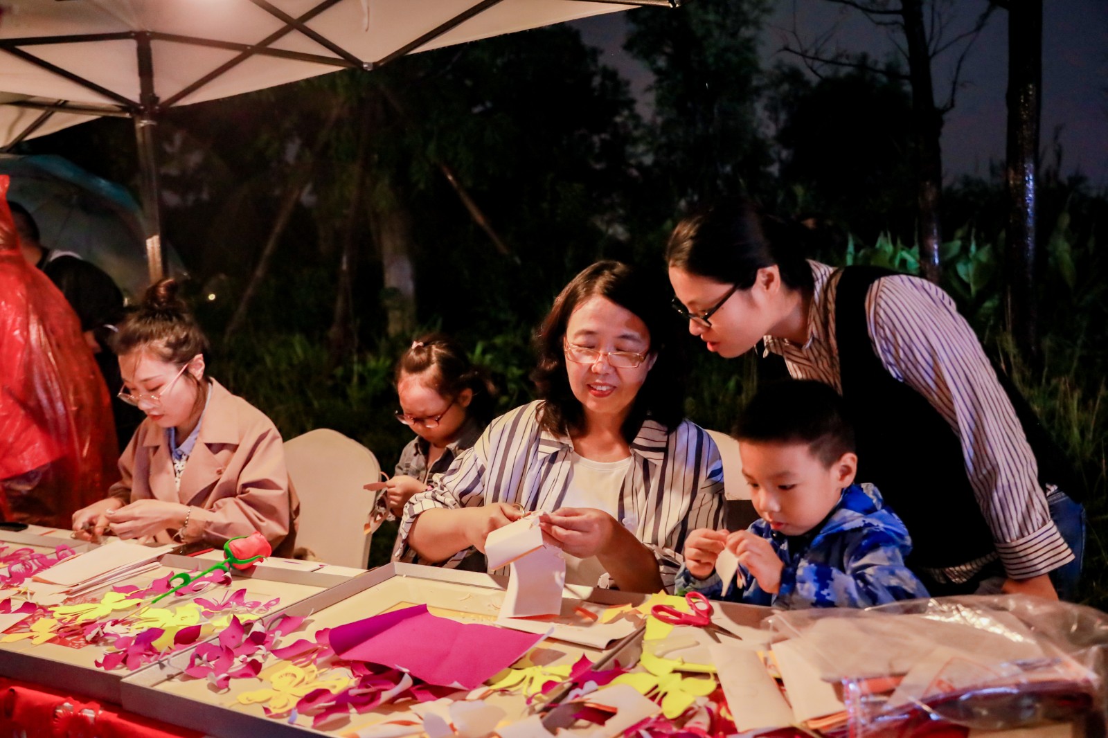 在另一边非遗市集处,“妈妈,这个真好看,我也想试试!”魏老师的剪纸摊位吸引了许多大朋友、小朋友前来参加。在大家的热情创作下,一只只蝴蝶活灵活现、栩栩如生。